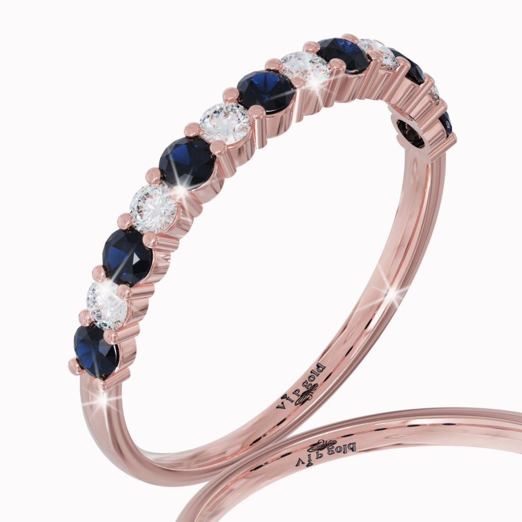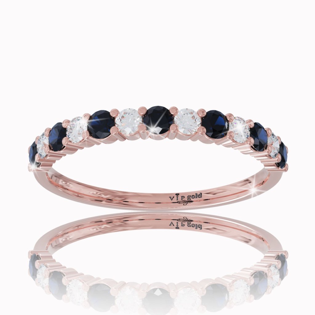 Diamantový prsteň s modrými zafírmi v červenom zlate 14K