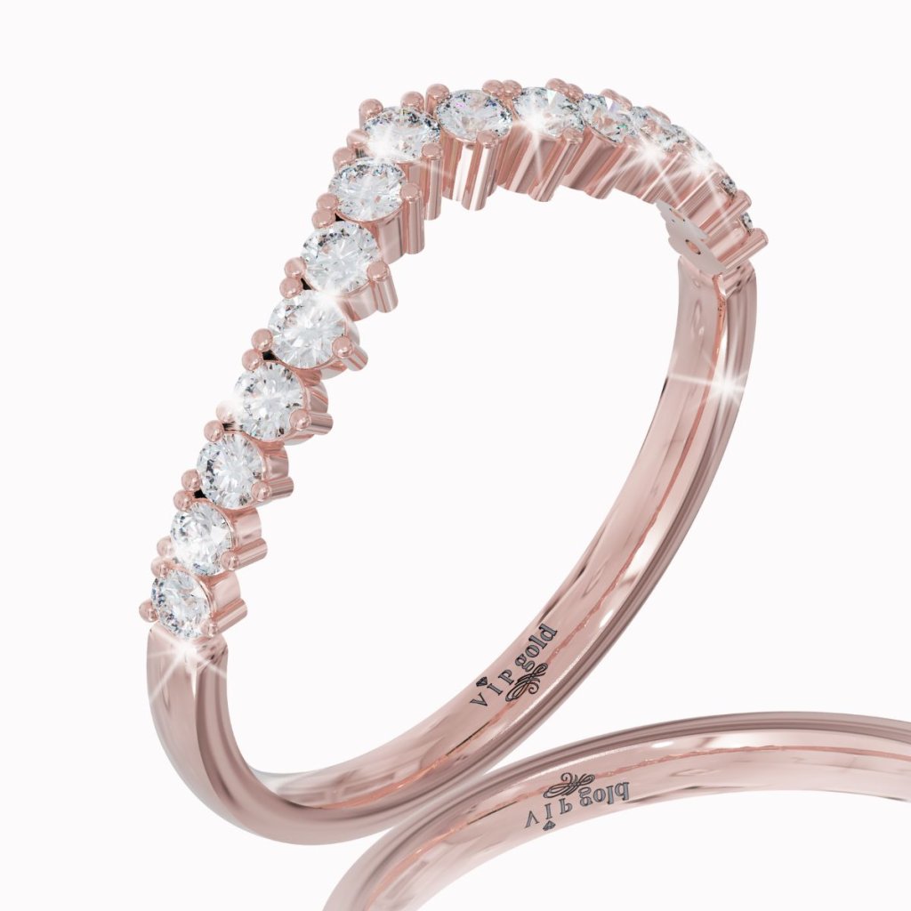 Nádherný jemný prsteň v tvare pomyselnej korunky, vyrobený zo 14 karátového červeného zlata.