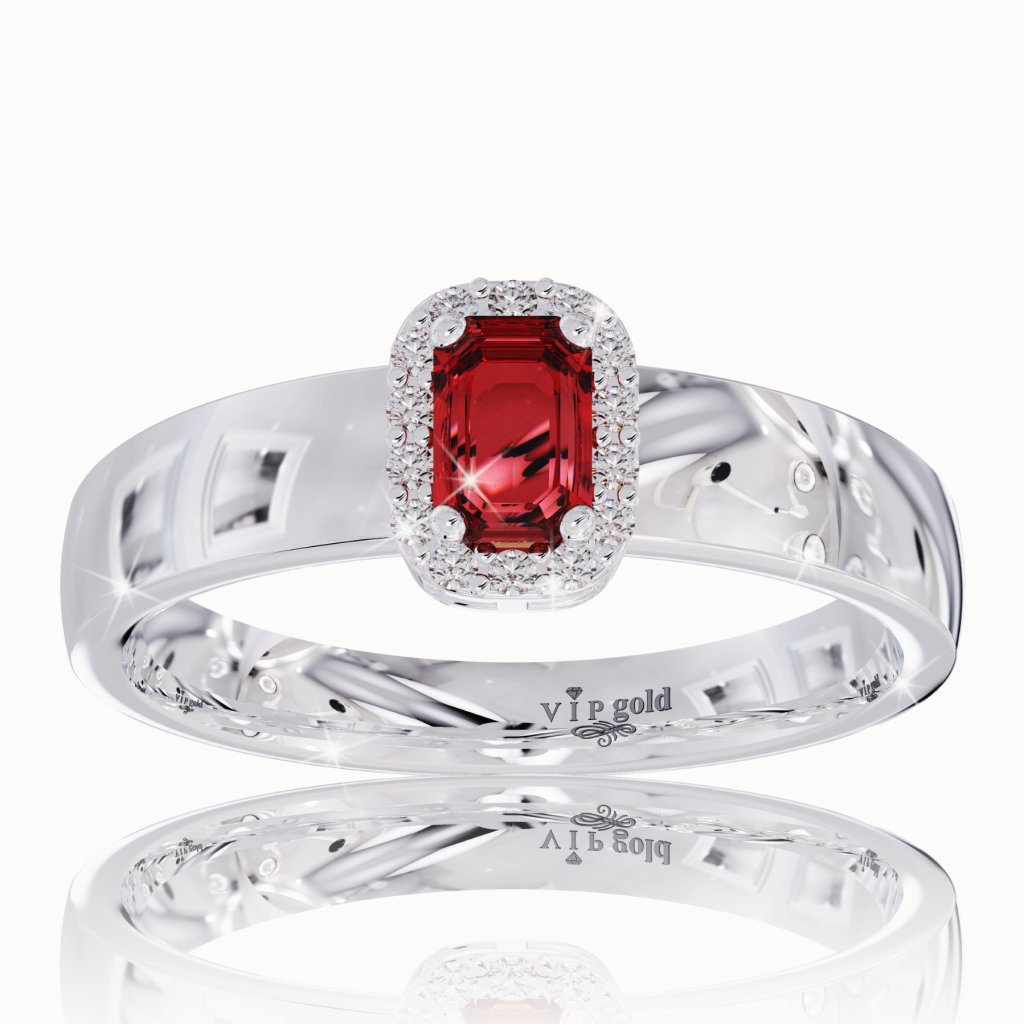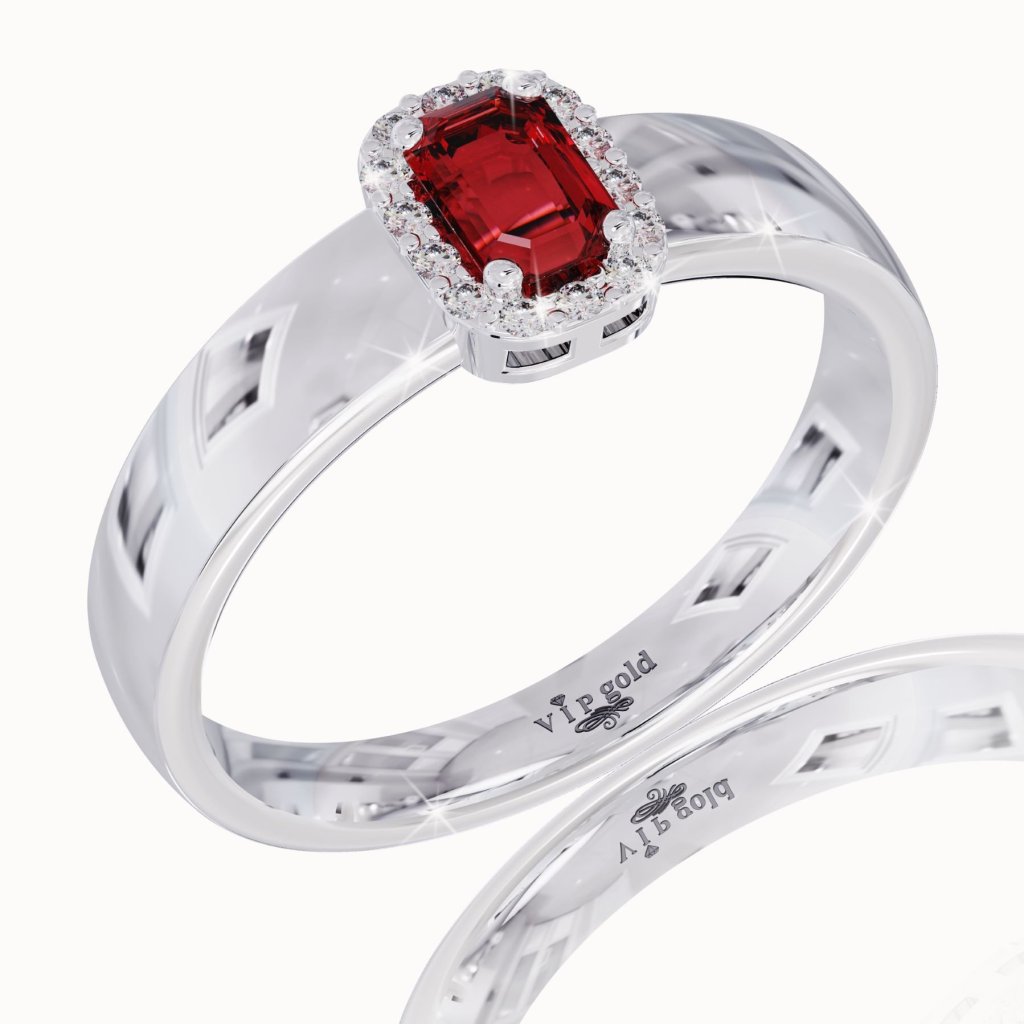 Prsteň s rubínom a briliantmi v bielom zlate 14k