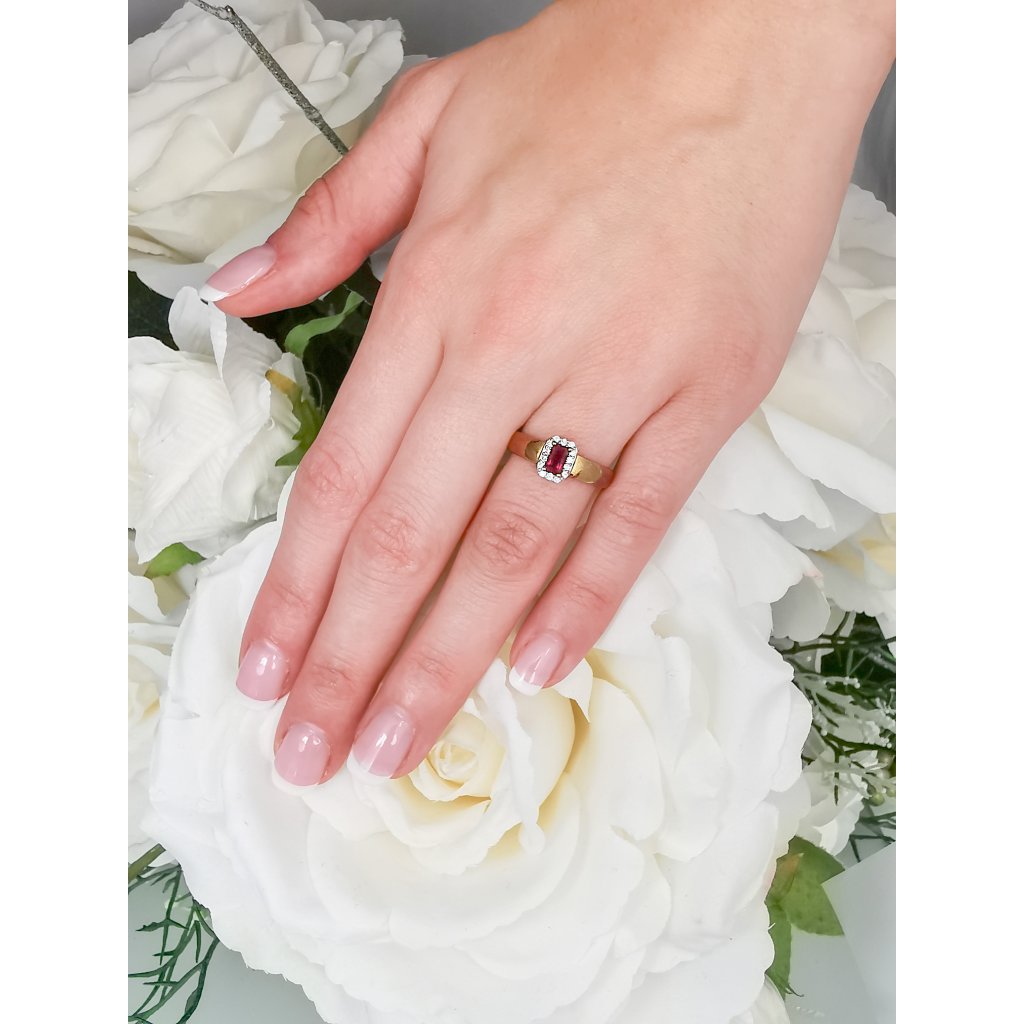 Prsteň s rubínom a briliantmi v červenom zlate14K