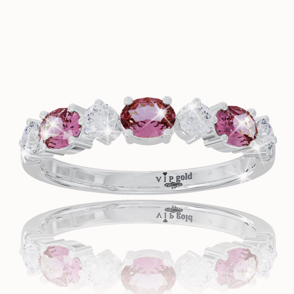 Prsteň s turmalínom a bielymi zafírmi v bielom zlate, 14K