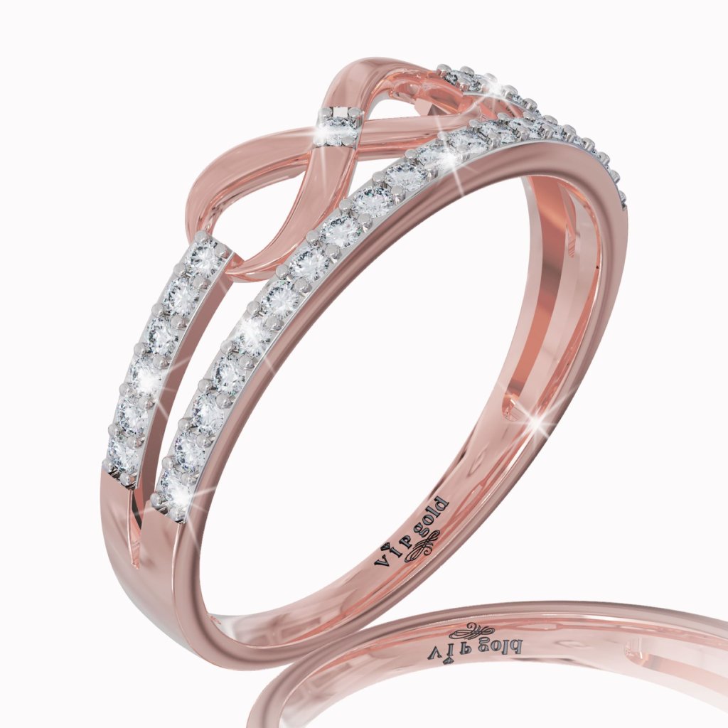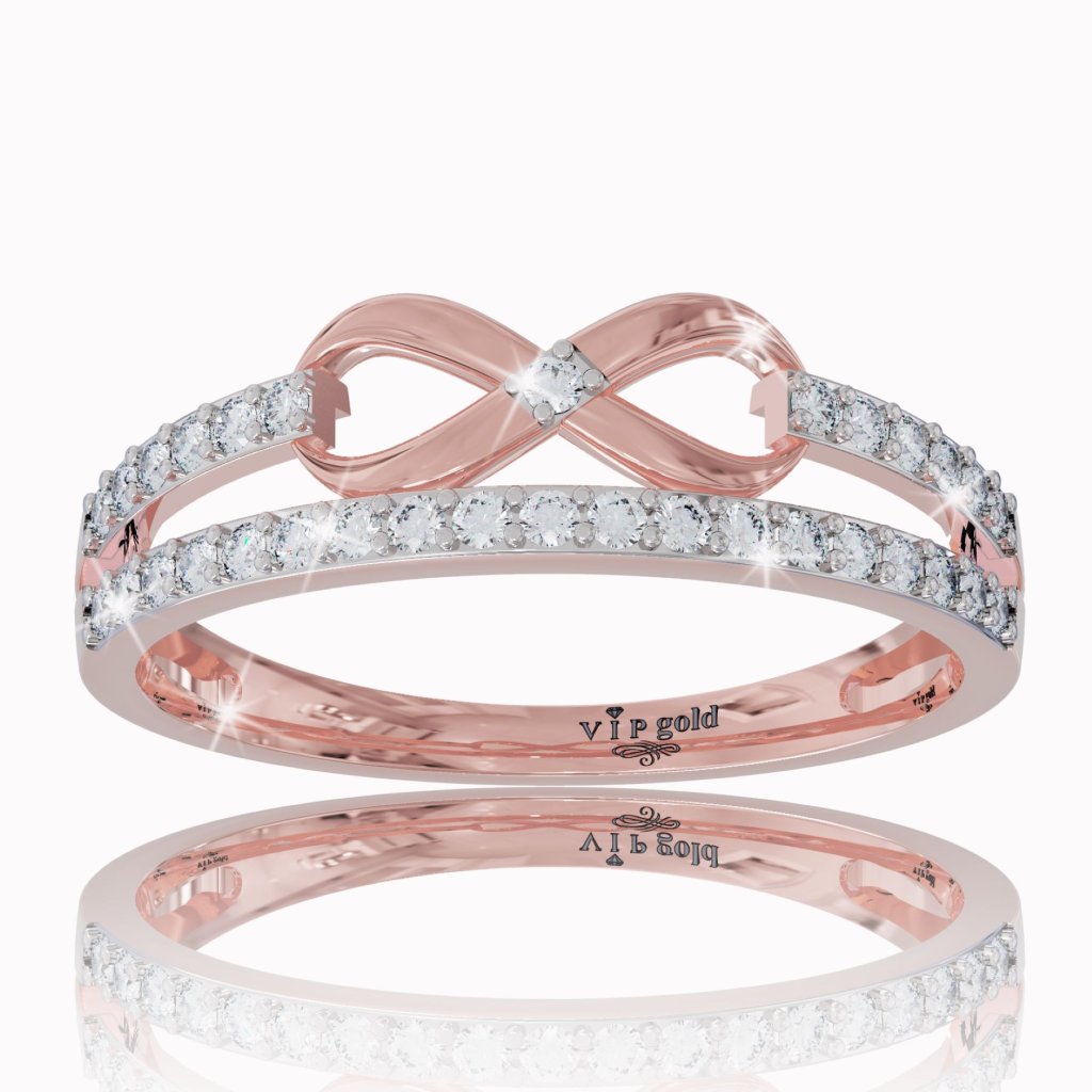 Zlatý prsteň nekonečno s bielymi zafírmi v červenom zlate 14K