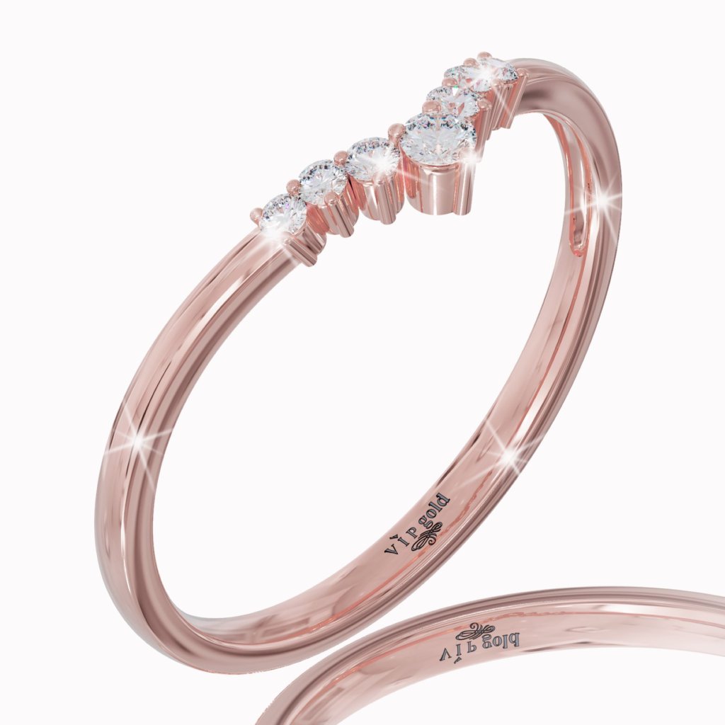 Zlatý prsteň s bielymi zafírmi v červenom zlate 14K