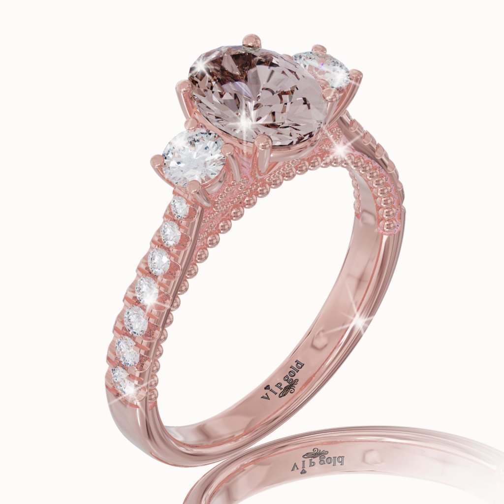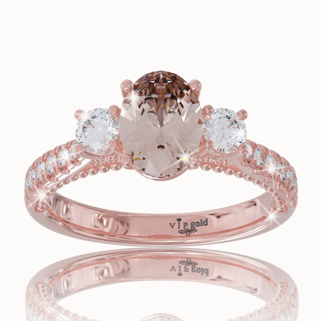 Zlatý prsteň s morganitom a bielymi zafírmi v 14K červenom zlate