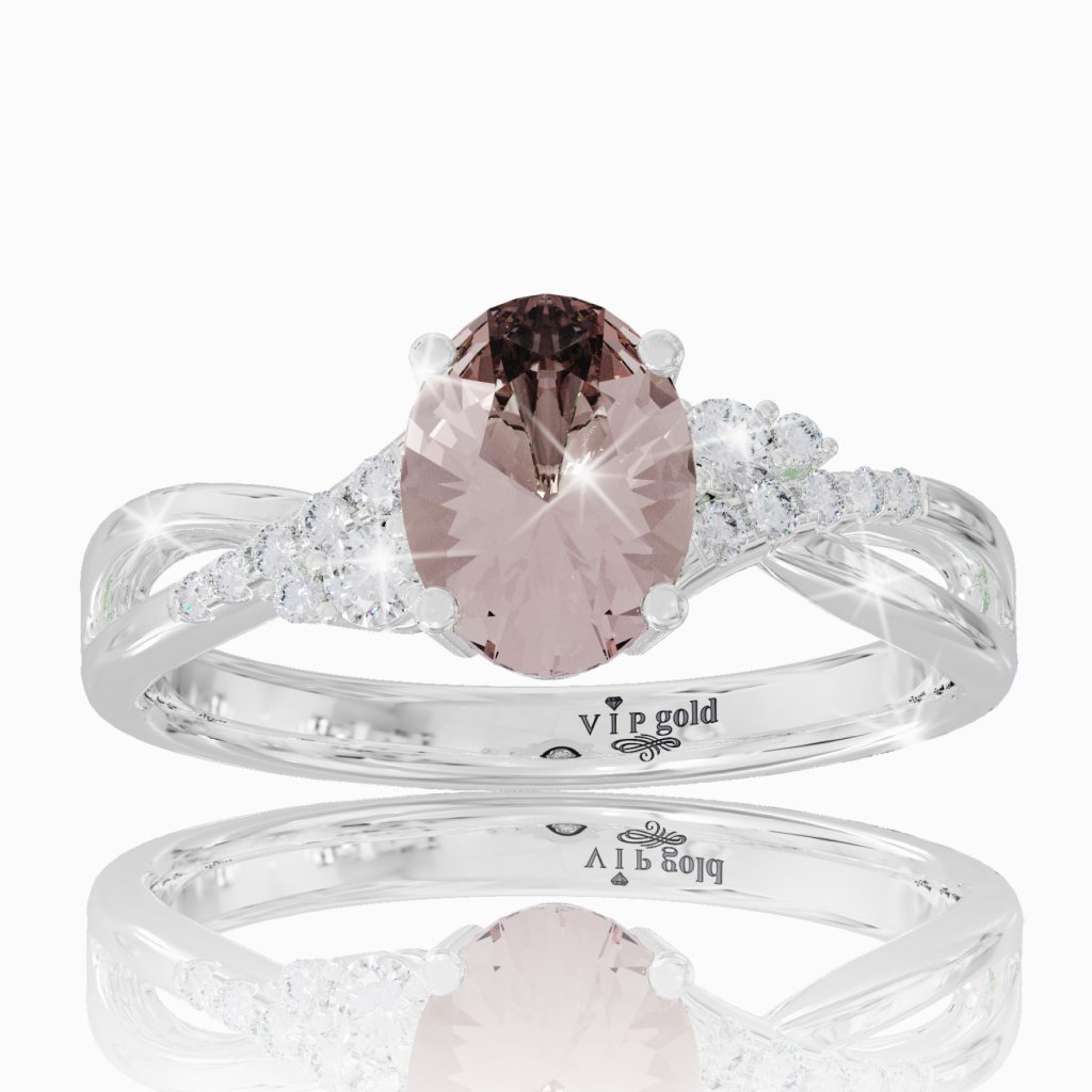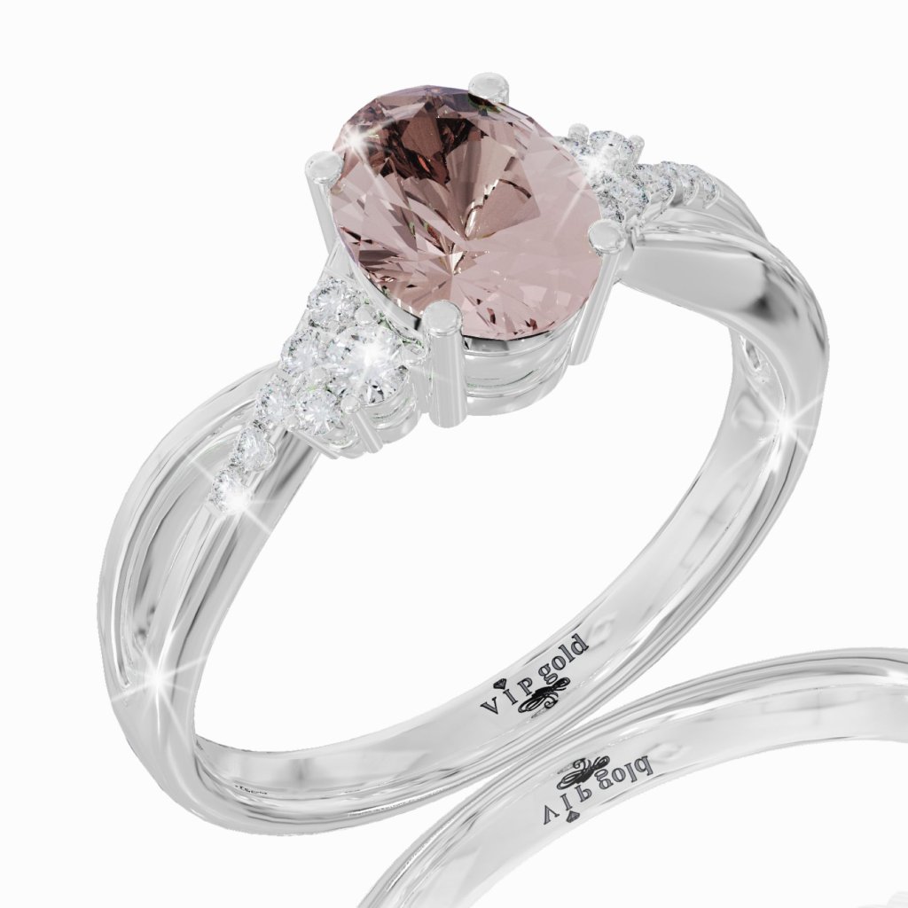 Zlatý prsteň s morganitom a bielymi zafírmi v bielom 14K zlate