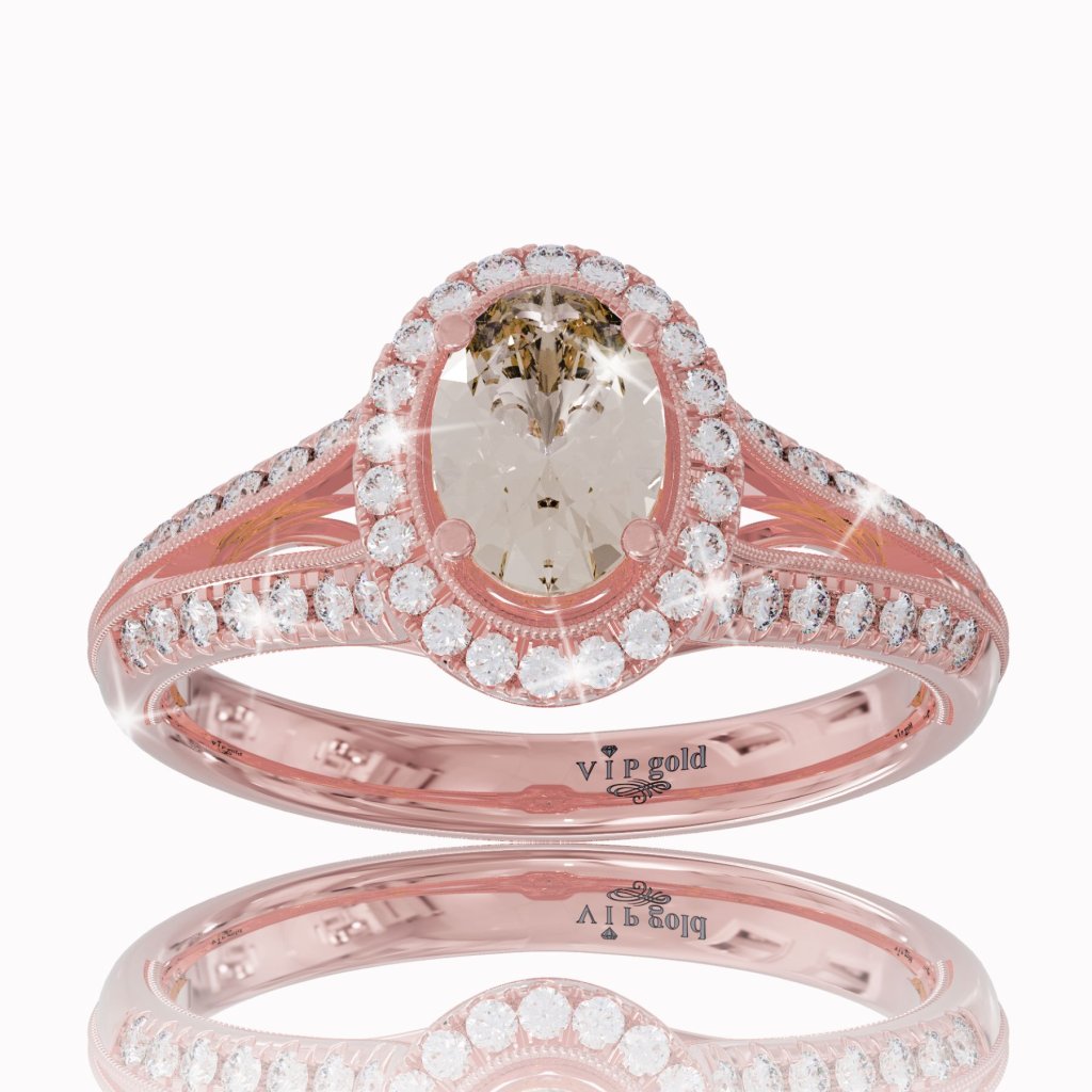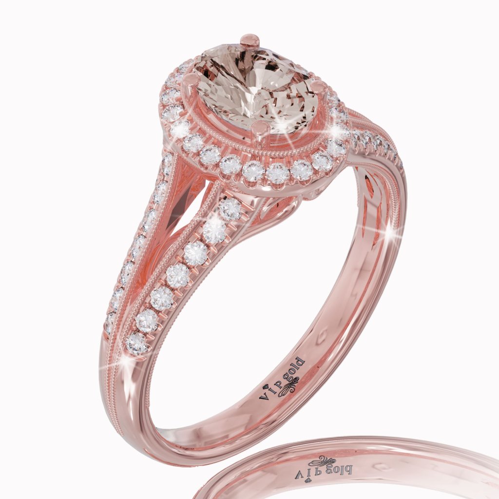 Spraviť to môžete aj prostredníctvom tohto krásneho prsteňa zo 14-karátového červeného zlata. V nápaditom dizajne pôsobí honosne a žensky, je zdobený centrálnym morganitom v oválnom výbruse. Jeho krásu dopĺňajú jemné kamene bieleho zafíru.