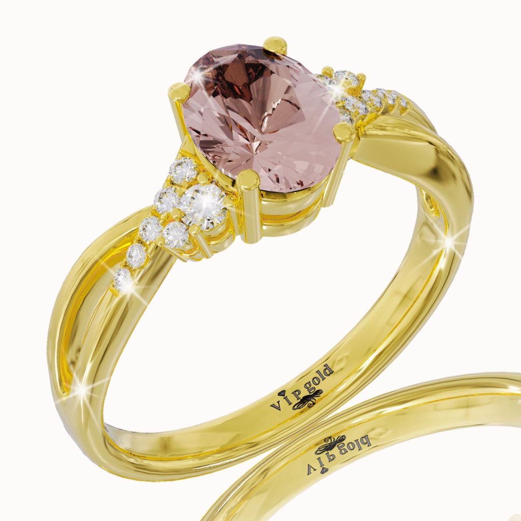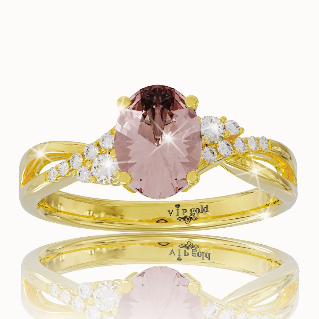 Zlatý prsteň s morganitom a bielymi zafírmi v žltom 14K zlate
