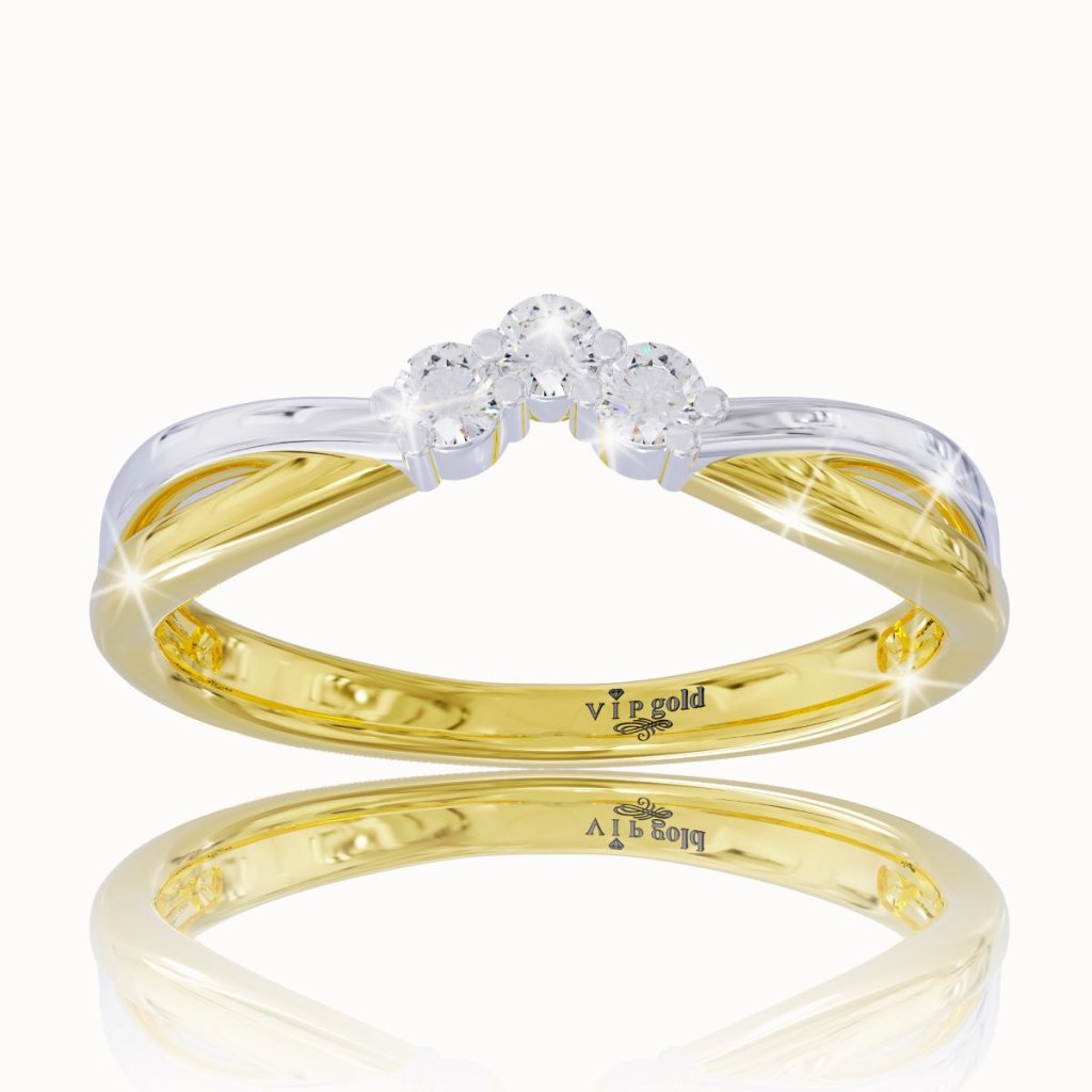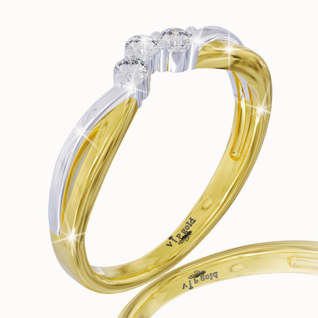 Elegantný prsteň zo 14 karátového žltého a bieleho zlata s bielymi zafírmi.