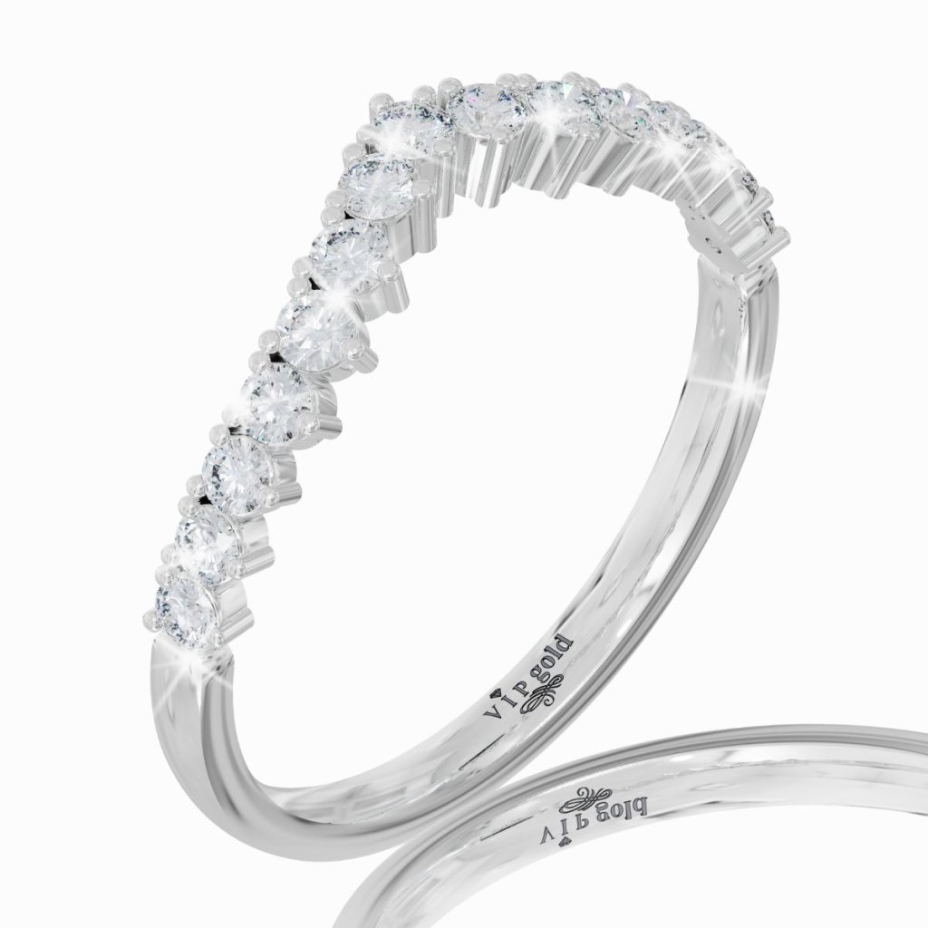Nádherný jemný prsteň v tvare pomyselnej korunky, vyrobený zo 14 karátového bieleho zlata.