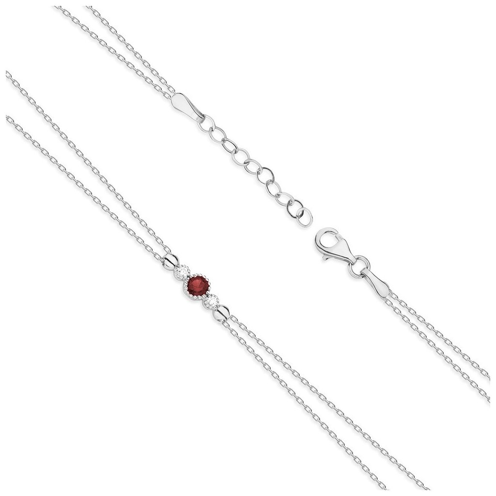 Minimalistický dámsky náramok, ktorý je vyhotovený zo žltého 14 karátového bieleho zlata, zdobený diamantami a rubínom.