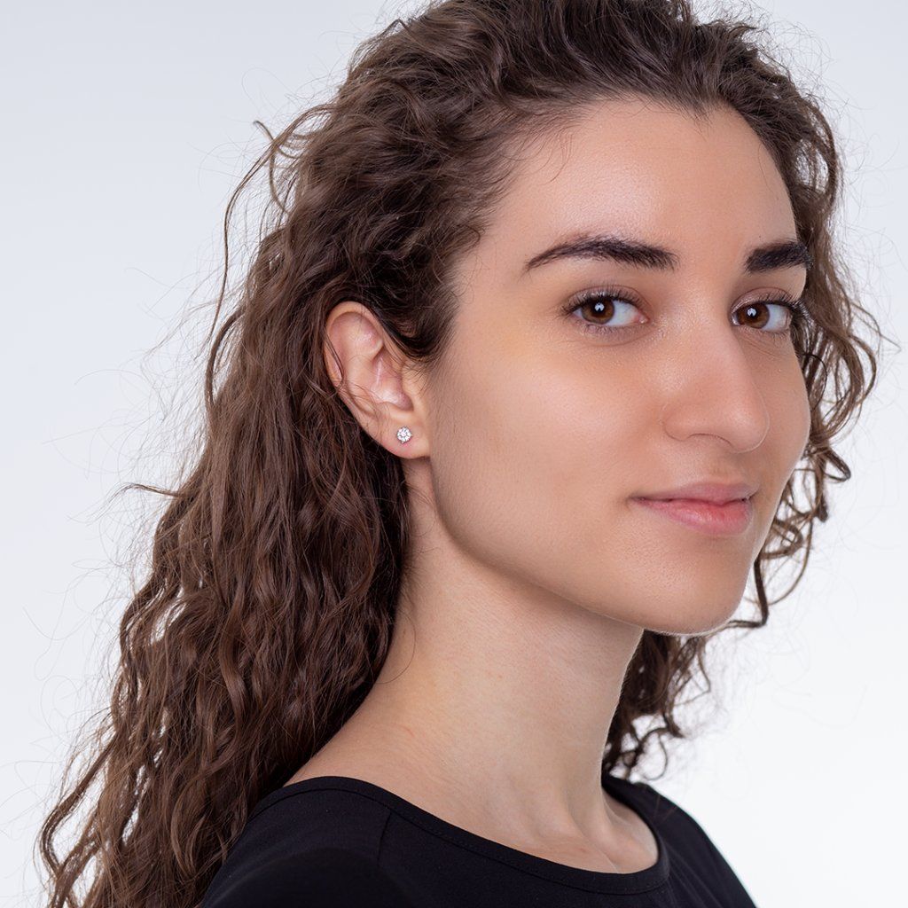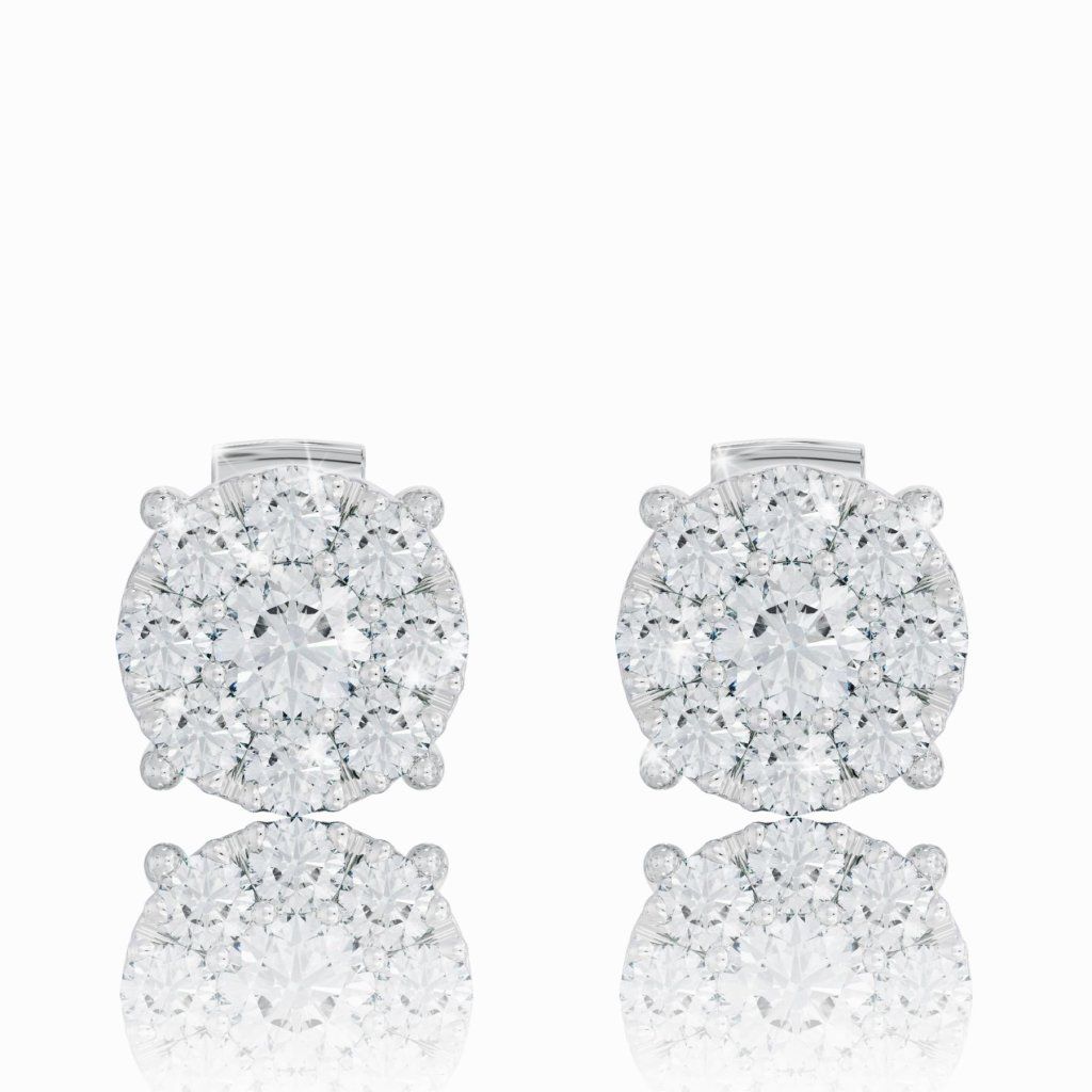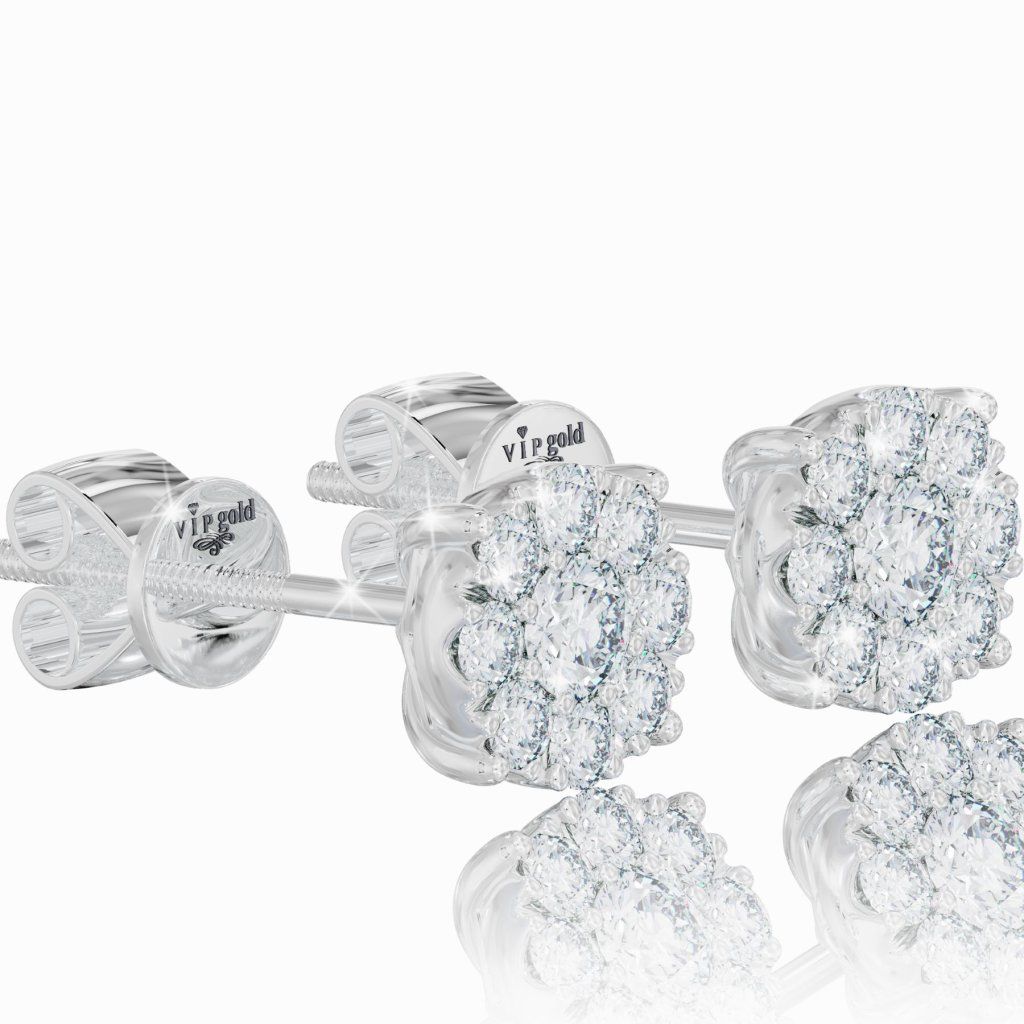Elegant women's earrings are decorated with brilliant-cut diamonds. They are made of 14 carat white gold.