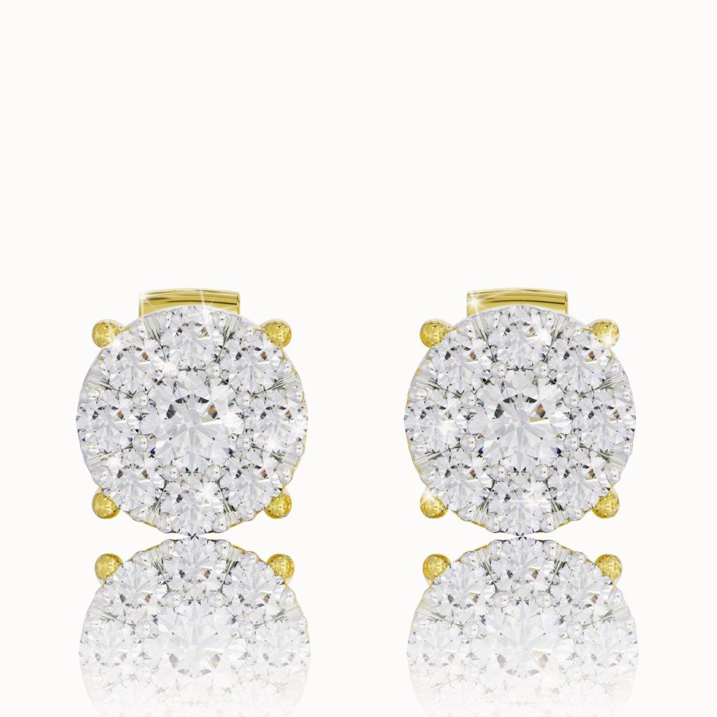 Delicate diamond stud earrings in yellow gold, 14K