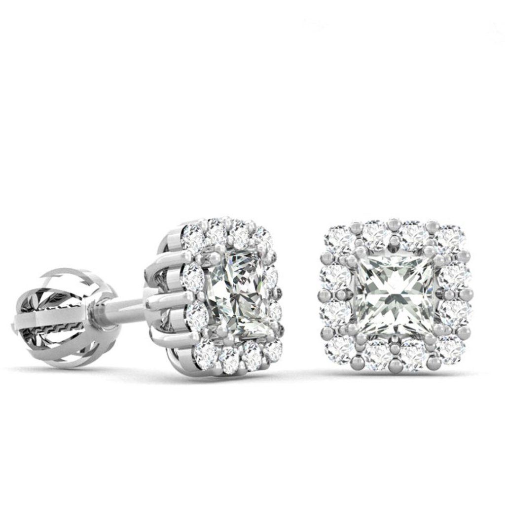 Square stud earrings with zircons, 14K white gold
