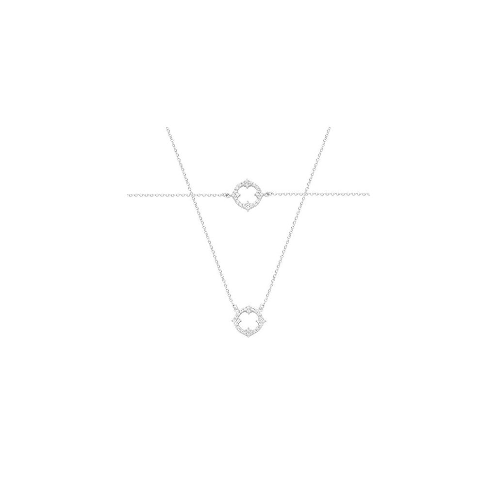 The elegant women's set consists of a bracelet and a necklace, which are made of 14 carat white gold.