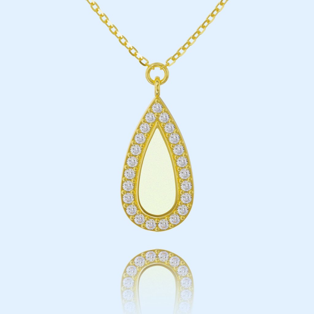 A minimalist necklace with a pendant is made of 14 karat yellow gold.