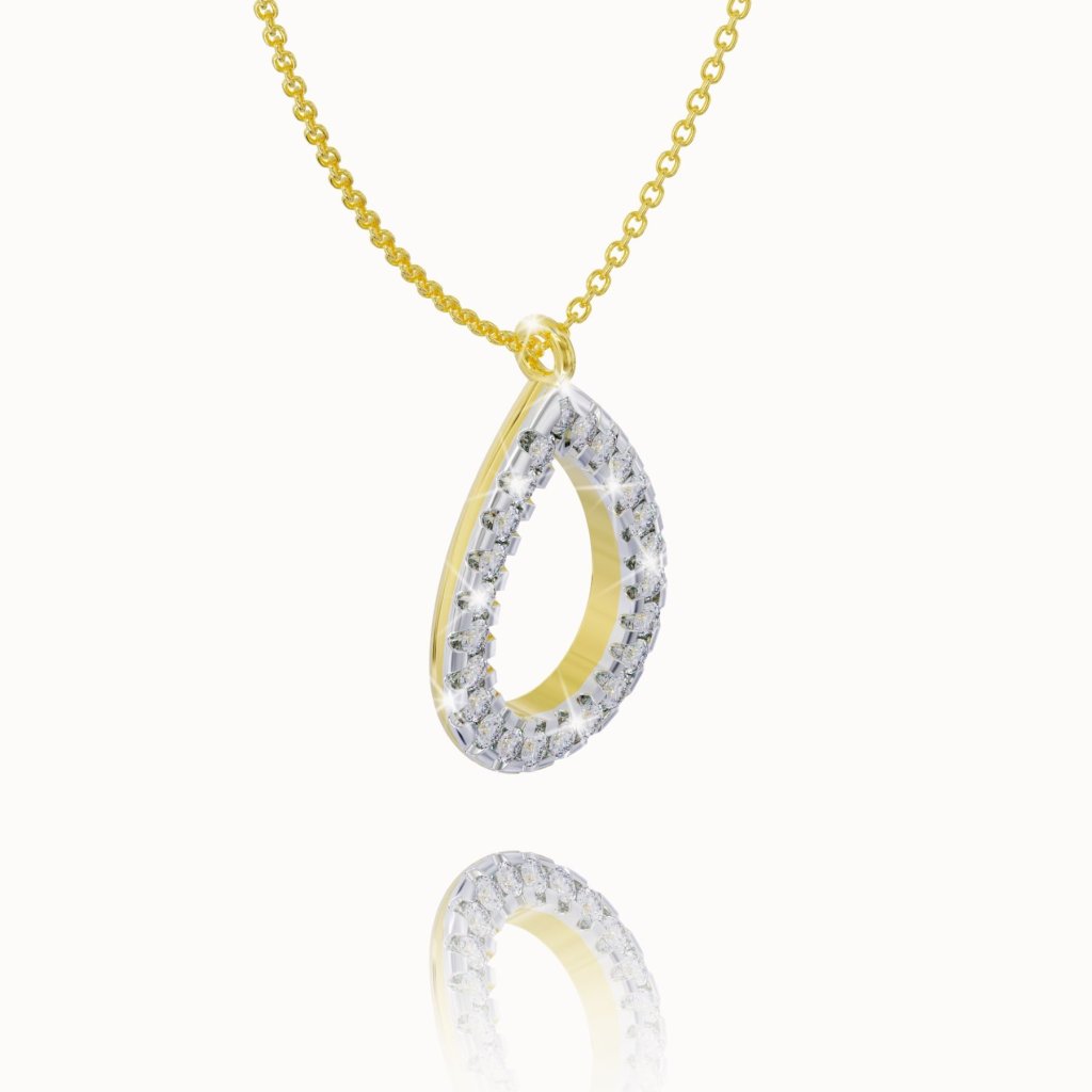 Delicate chain with a diamond drop-shaped pendant, 14K yellow gold