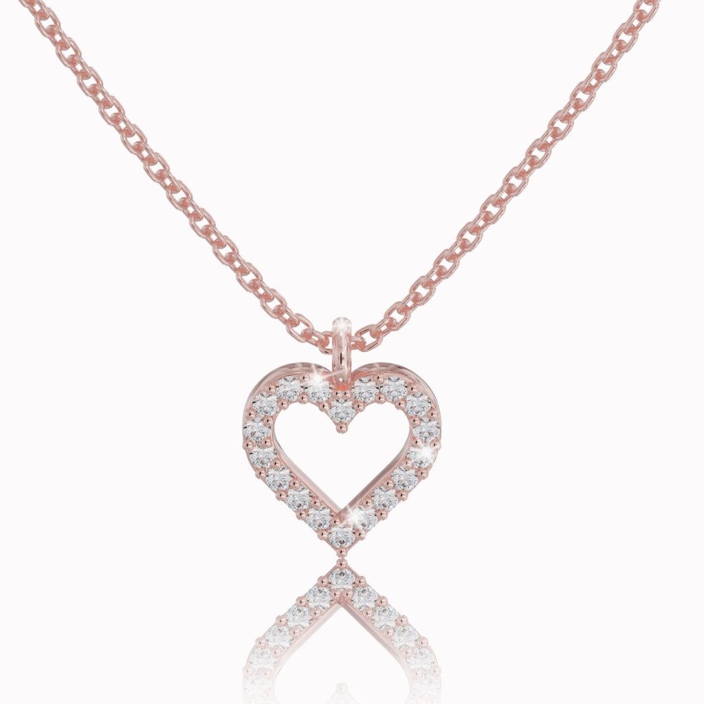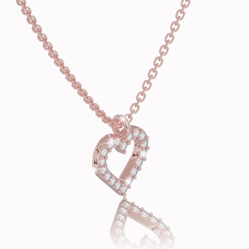 A beautiful women's necklace with a heart-shaped pendant is made of 14 carat red gold.
