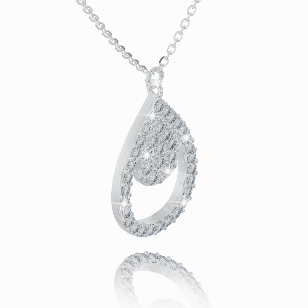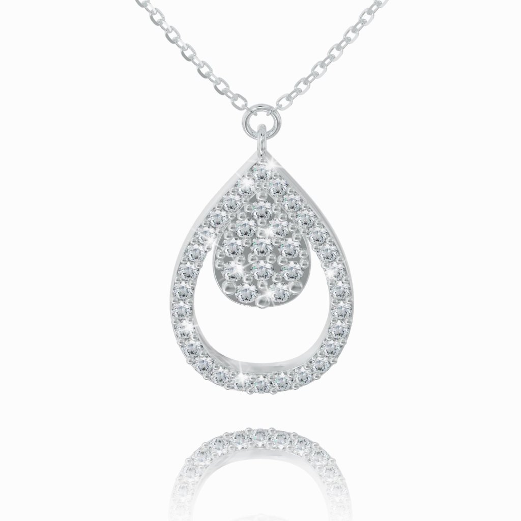The necklace is decorated with a double drop-shaped pendant, which is studded with fine Swarovski zircons. The length of the gold necklace is 42cm.