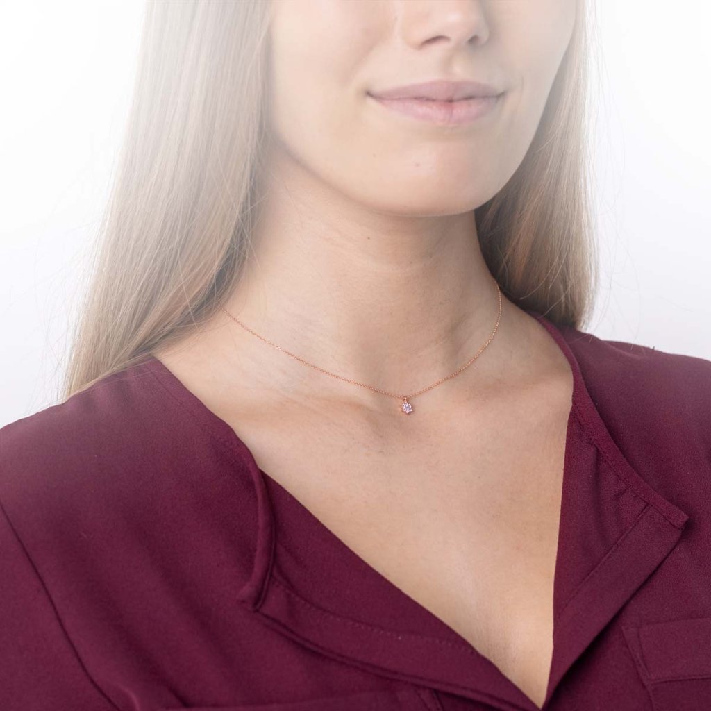 A delicate women's necklace made of 14 karat rose gold.