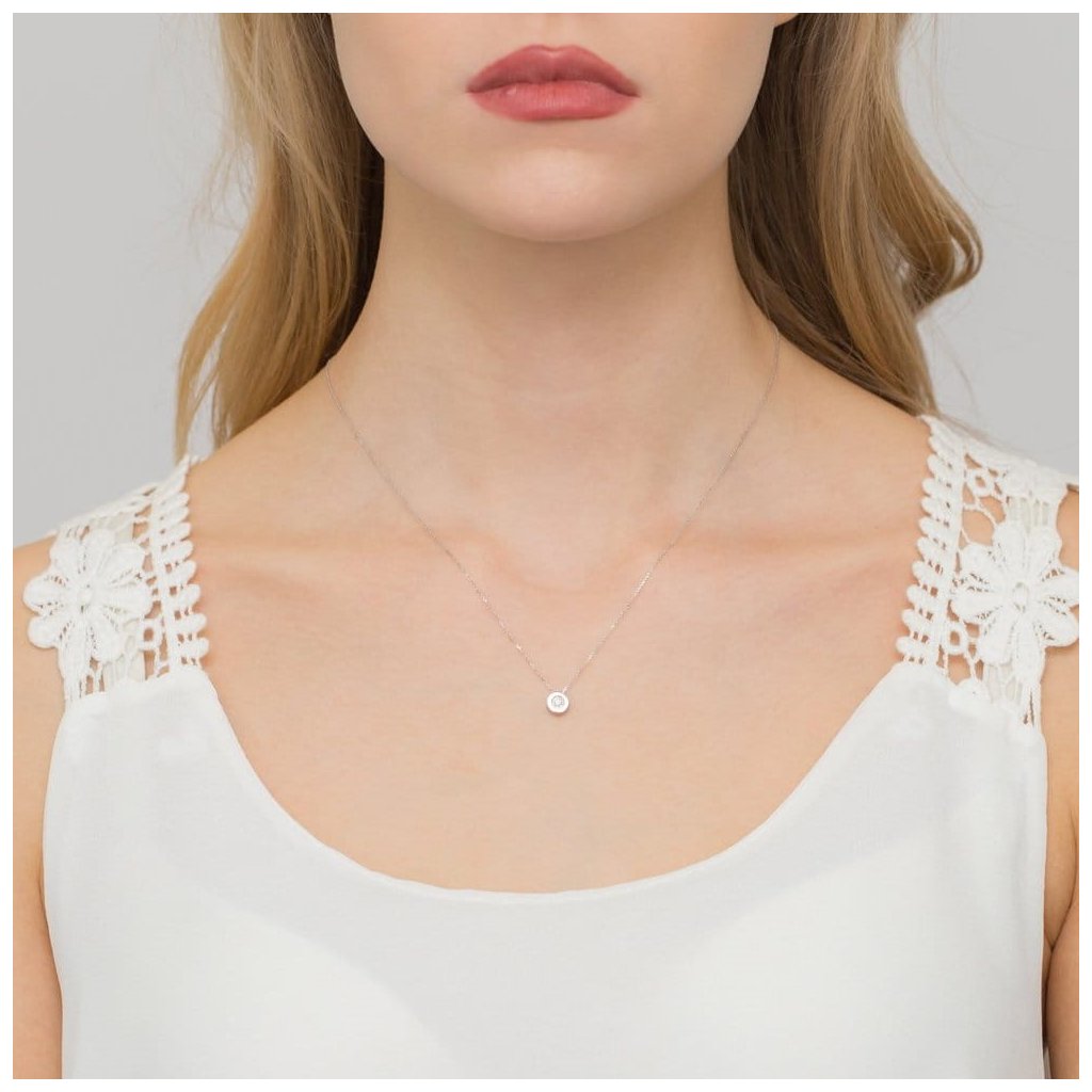 A charming necklace made of 14-carat white gold, decorated with a beautiful diamond weighing 0.08 ct.