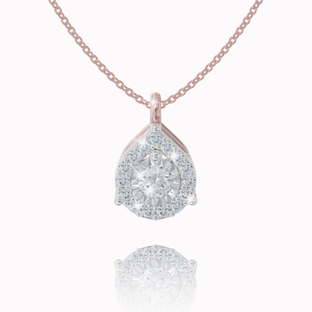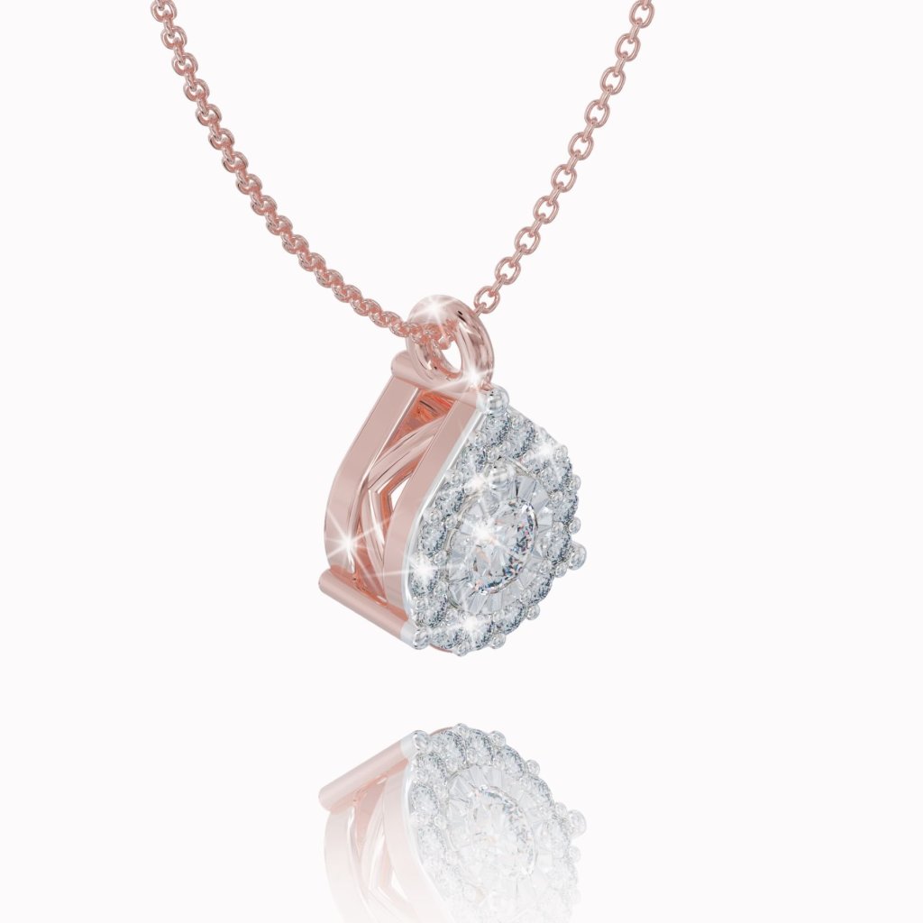 A delicate necklace made of 14 karat rose gold that will gently illuminate your cleavage thanks to the luxurious diamonds set in the pendant.
