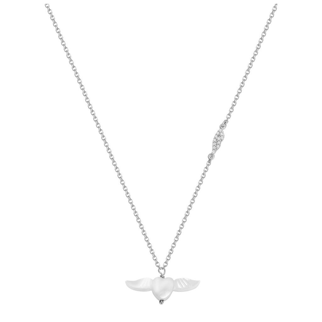 Gold necklace heart with wings, 14K white gold