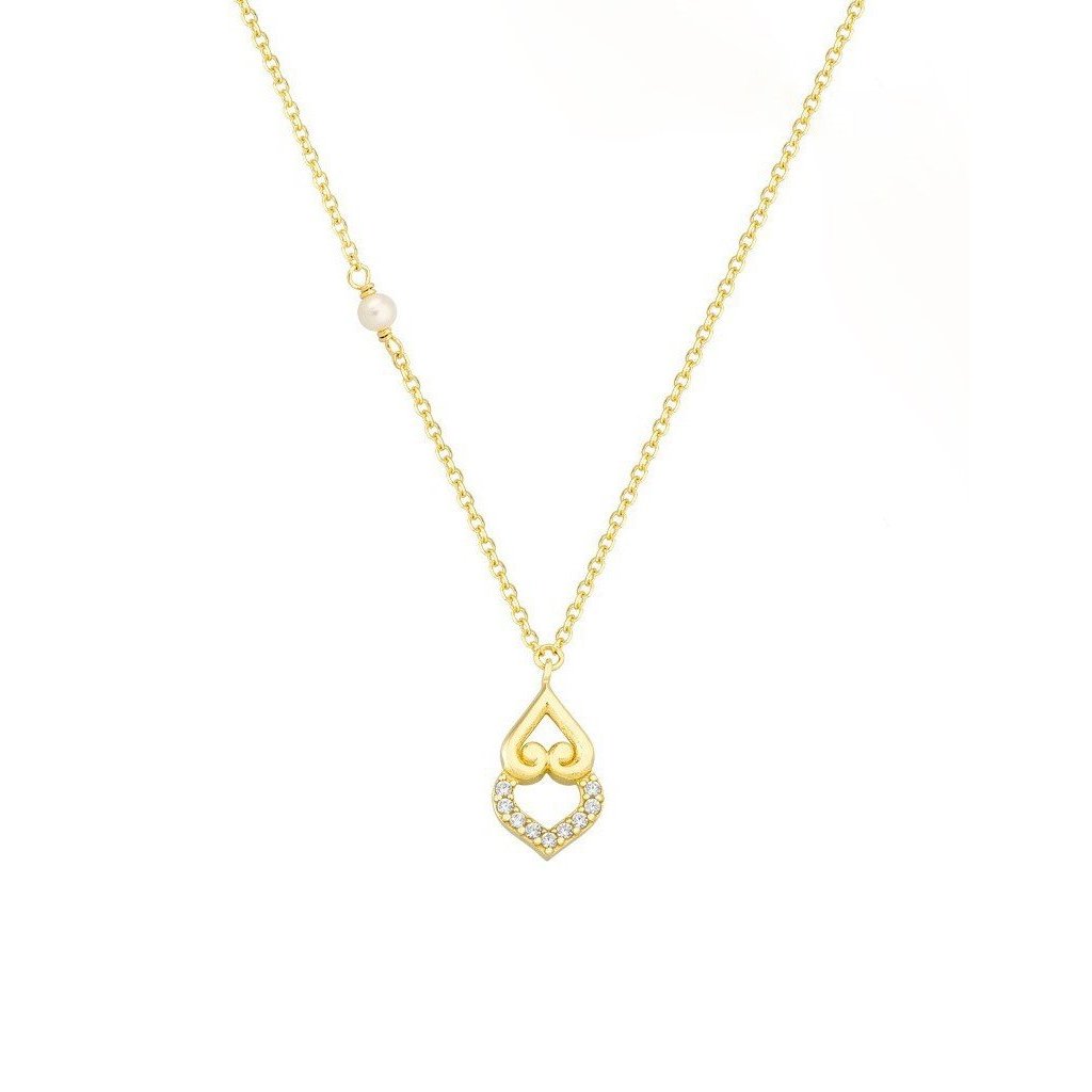 Women's necklace with a pendant in the shape of two connected hearts that belong together forever.