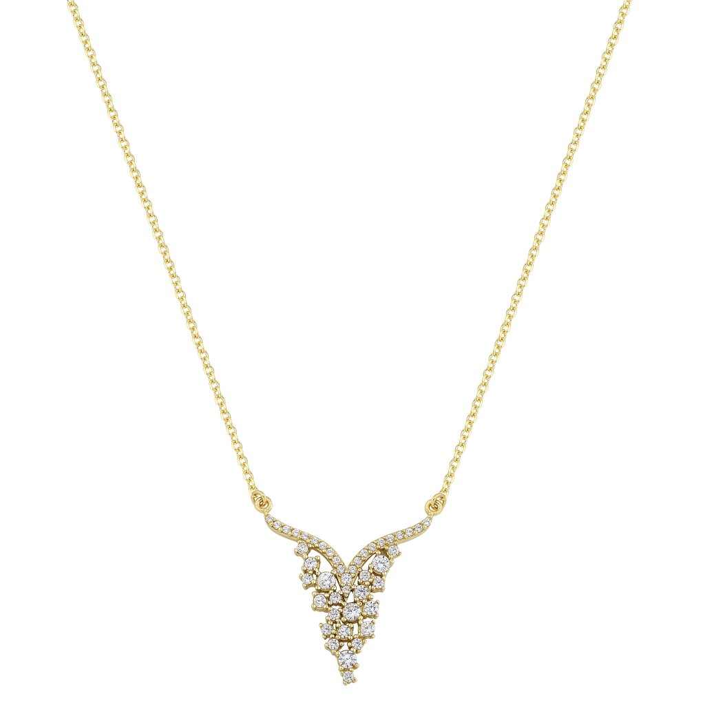 The gold pendant on the necklace is decorated with sparkling Swarovski zircons.
