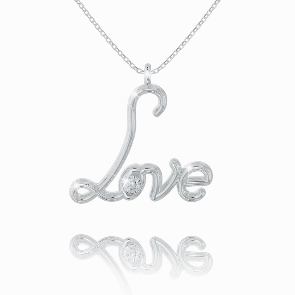 The pendant with the inscription Love contains a clear Swarovski zircon.