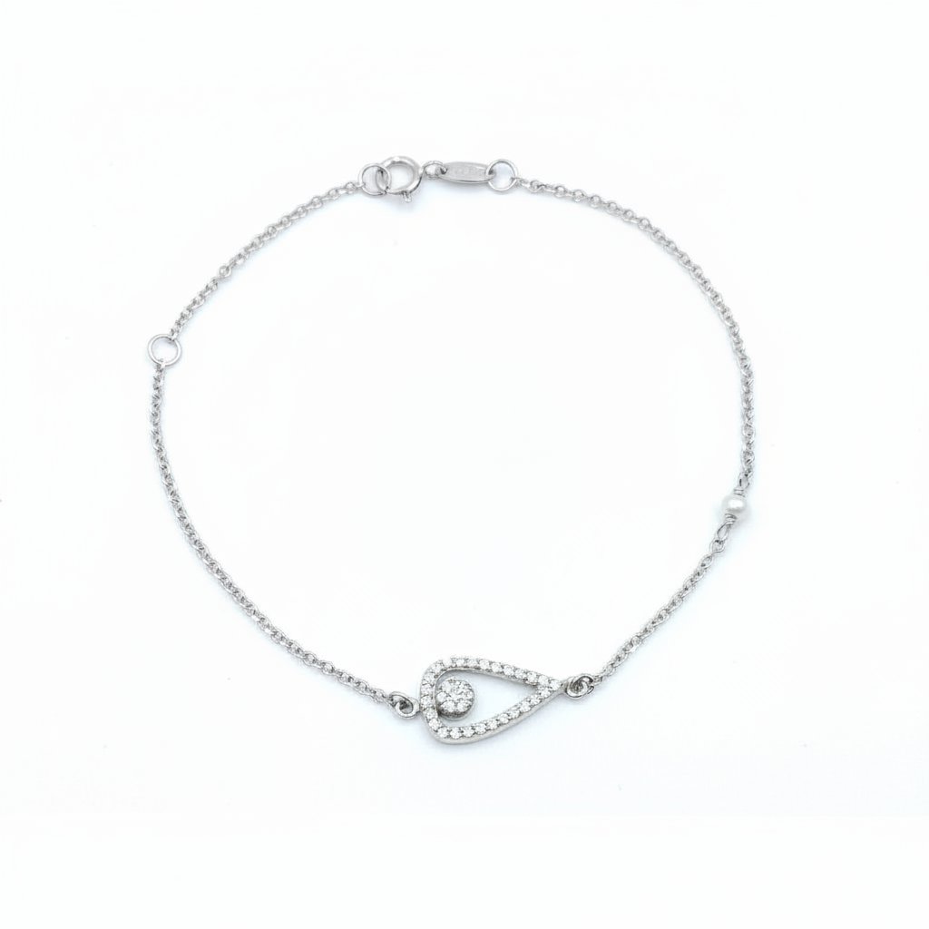 Elegantný náramok z bieleho zlata zdobený zirkónmi, 14K
