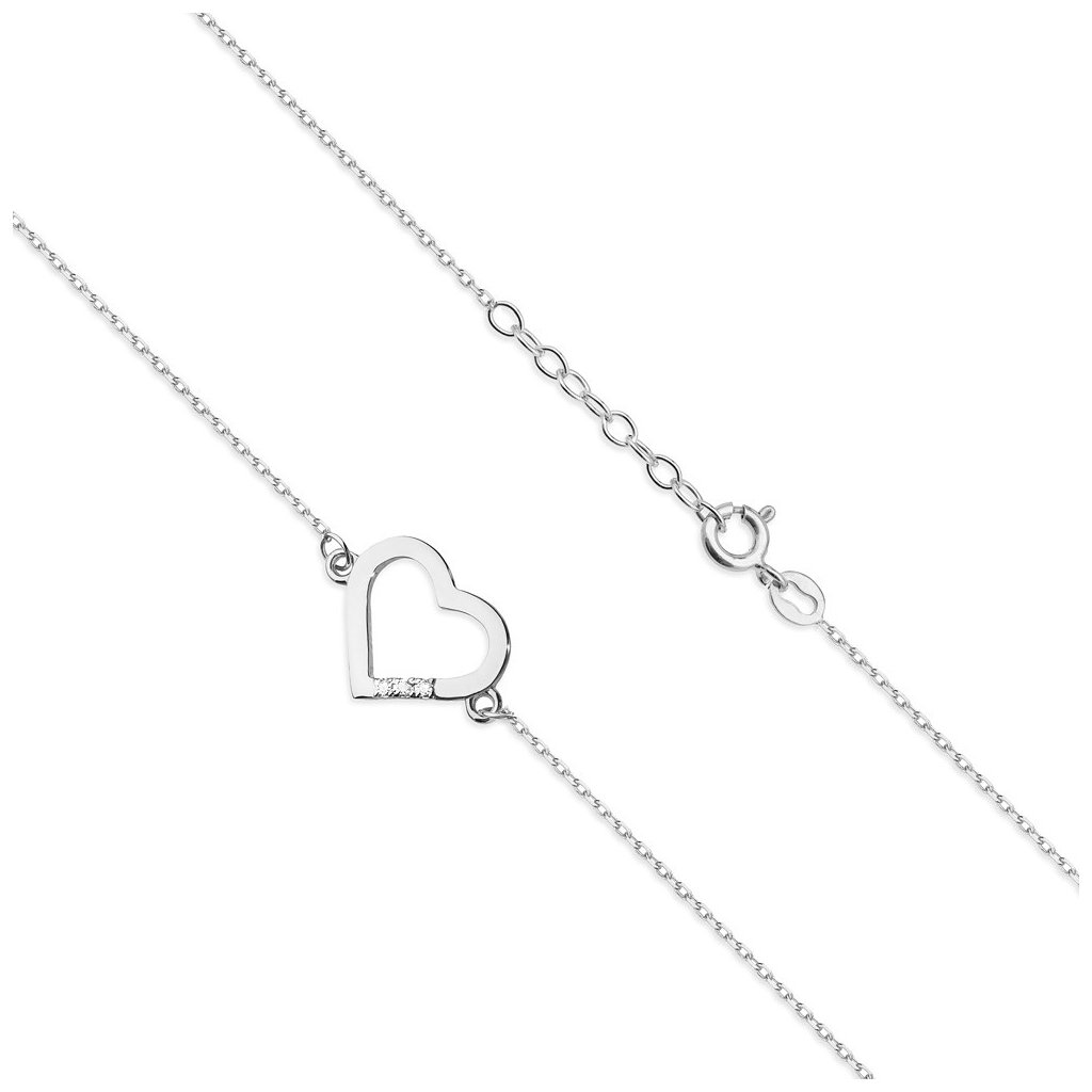 Náramok z bieleho zlata srdiečko s diamantmi, 14K