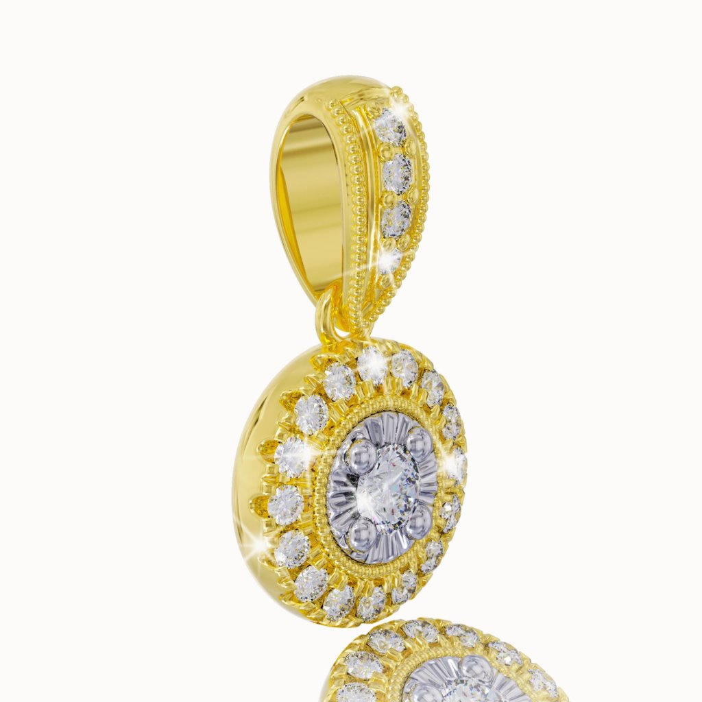 Očarujúci prívesok zo 14 karátového žltého zlata, vykladaný bielymi zafírmi, je vhodným šperkom na doplnenie každého outfitu.