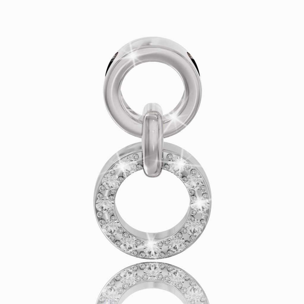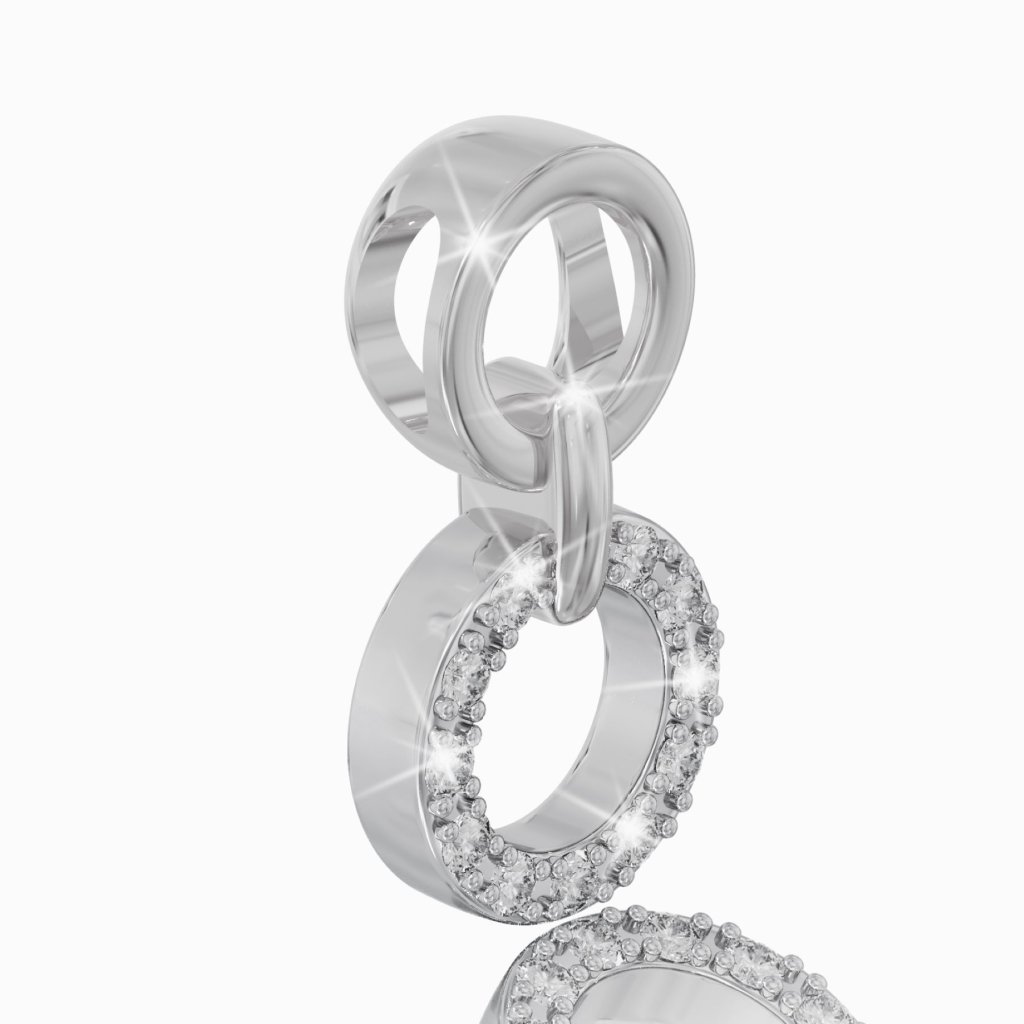 Prívesok v tvare krúžkov s bielymi zafírmi zo 14K bieleho zlata