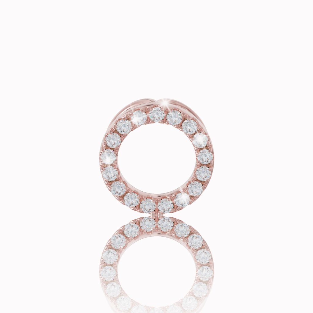 Minimalistický prívesok zo 14 karátového červeného zlata, vykladaný bielymi zafírmi, je vhodným šperkom na doplnenie každého outfitu.