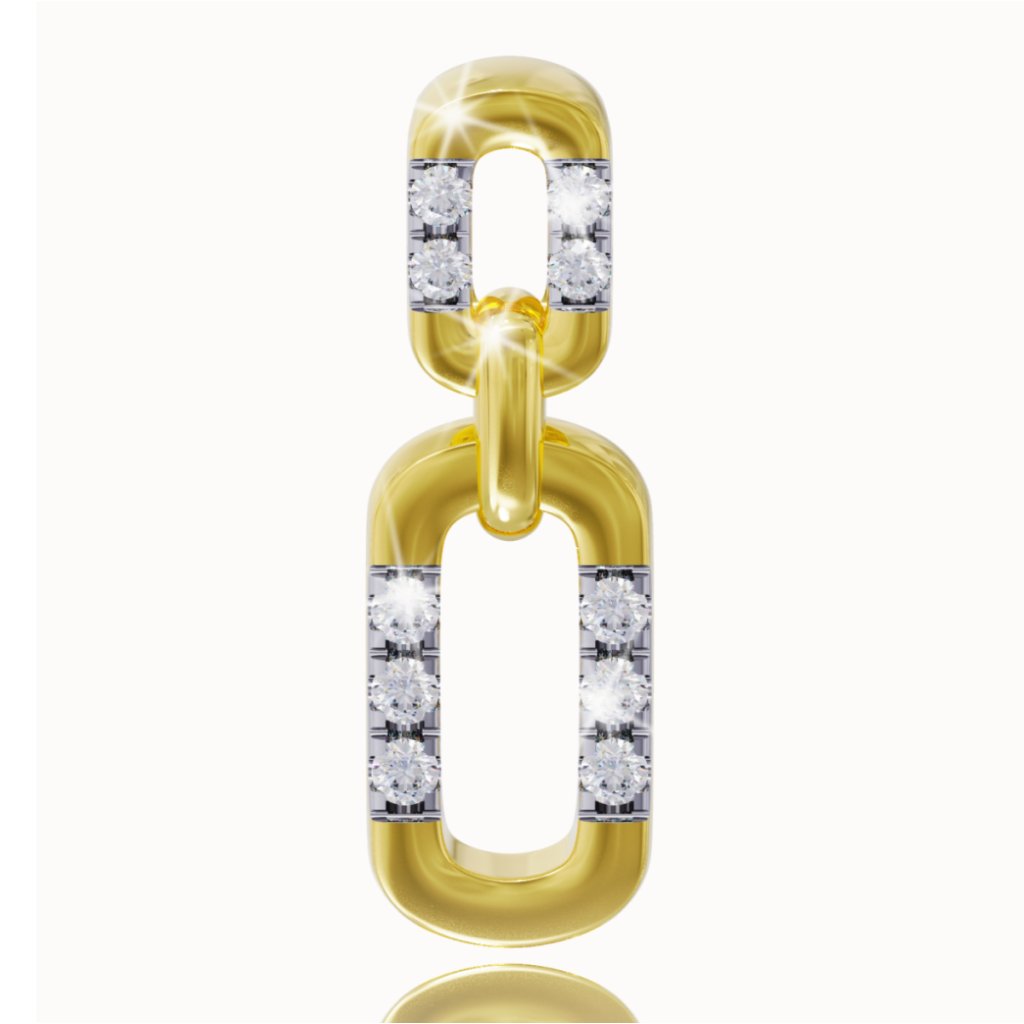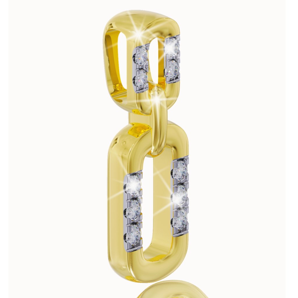 Decentný prívesok zo 14 karátového žltého zlata, vykladaný bielymi zafírmi, sa bude nositeľke v spojení s retiazkou z bieleho zlata, zaručene krásne vynímať na krku.