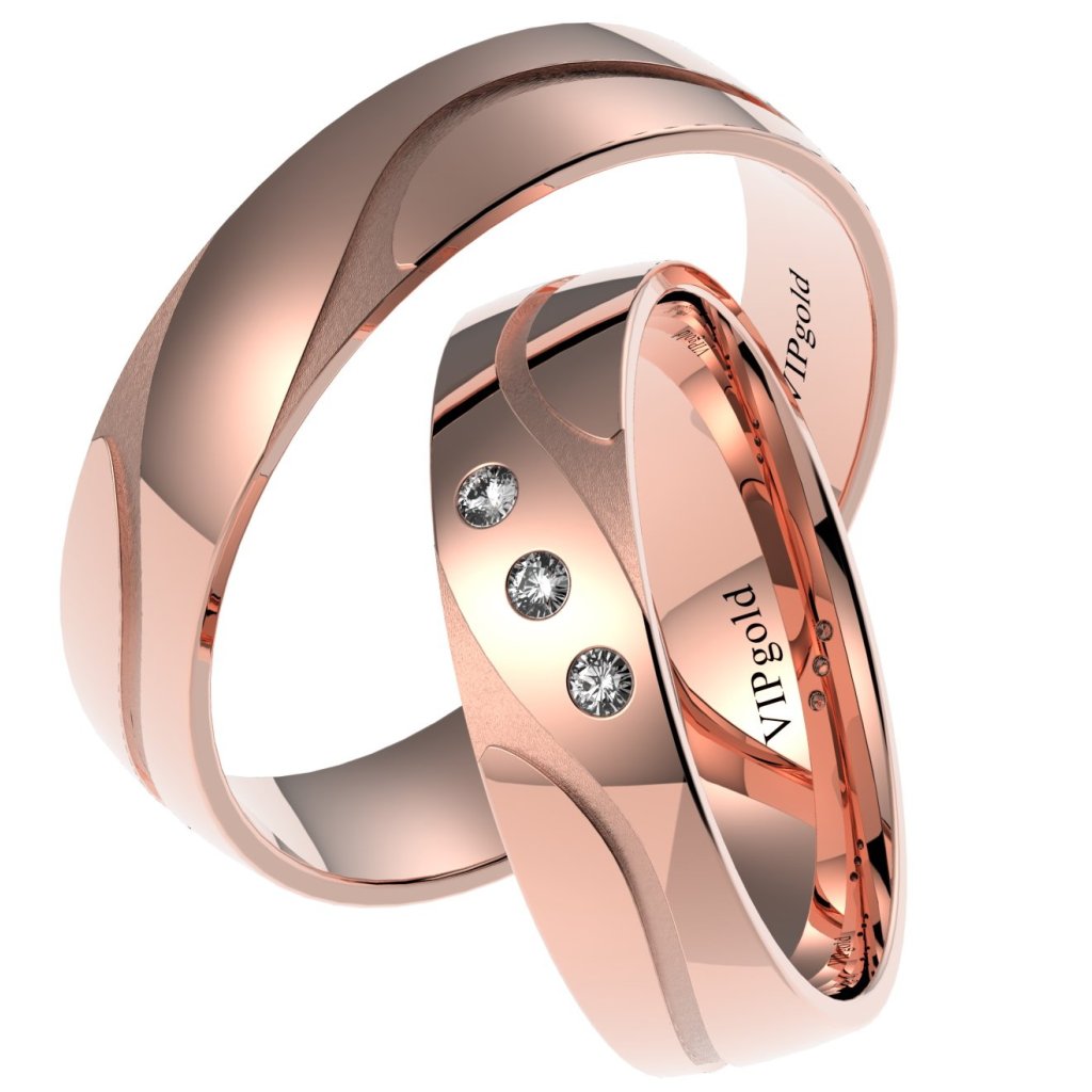 Tieto svadobné obrúčky sú vyhotovené zo 14 karátového zlata, so zaobleným vonkajším profilom. Vnútorný profil obrúčok je tiež zaoblený, čo zabezpečuje vysoký komfort pri ich nosení. Svadobné obrúčky majú šírku 5 mm. Dámska obrúčka je zdobená tromi kamienkami (briliant a zirkón) s veľkosťou 1,5 mm.