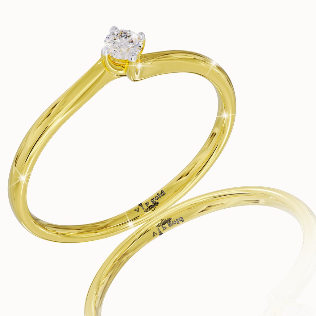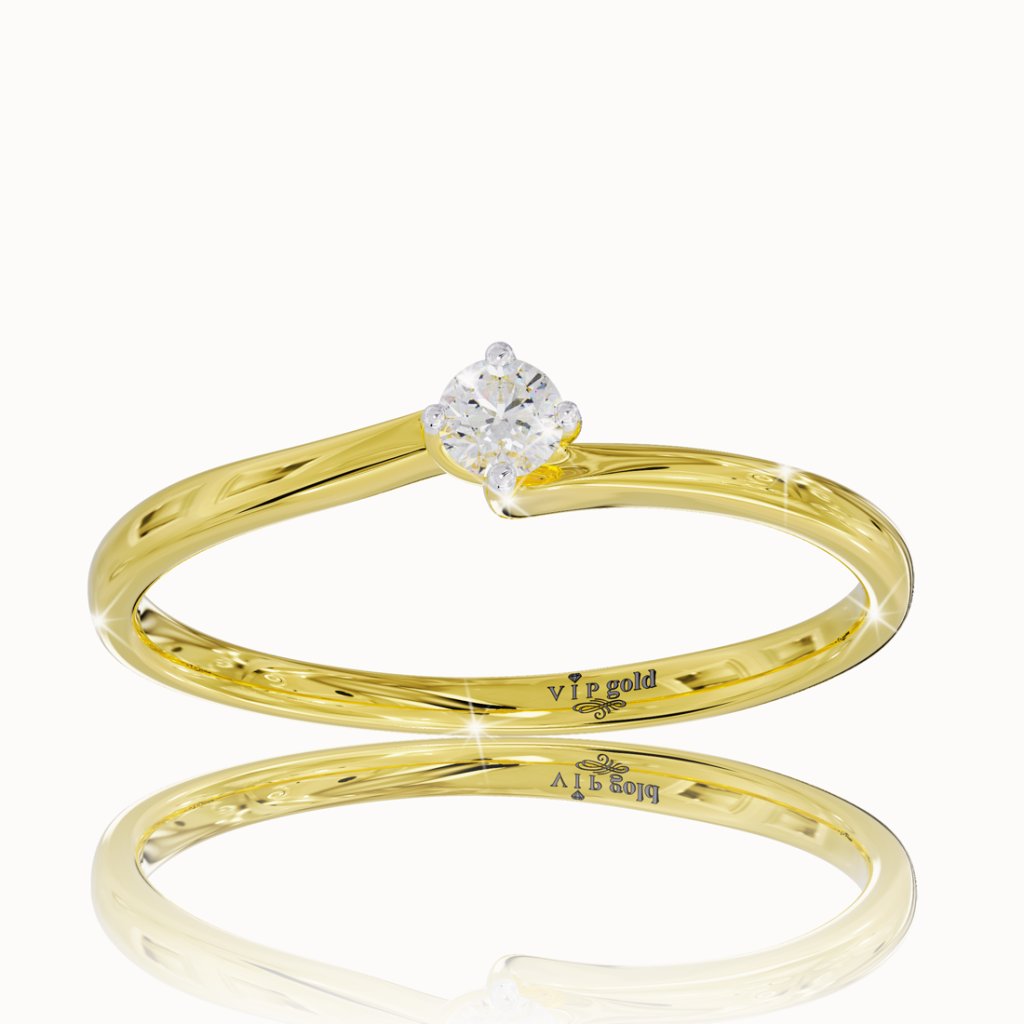 Jemný prsteň s briliantom, 14K žlté zlato