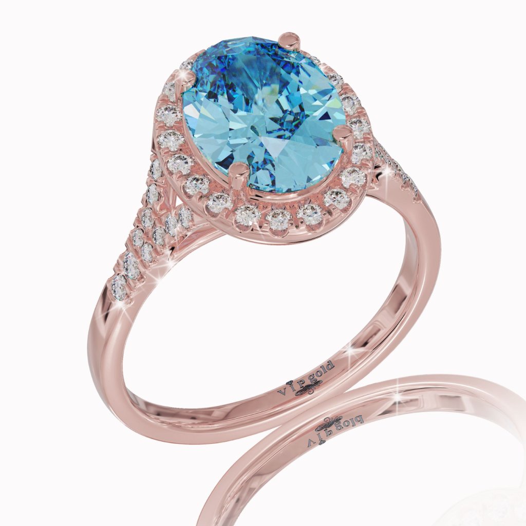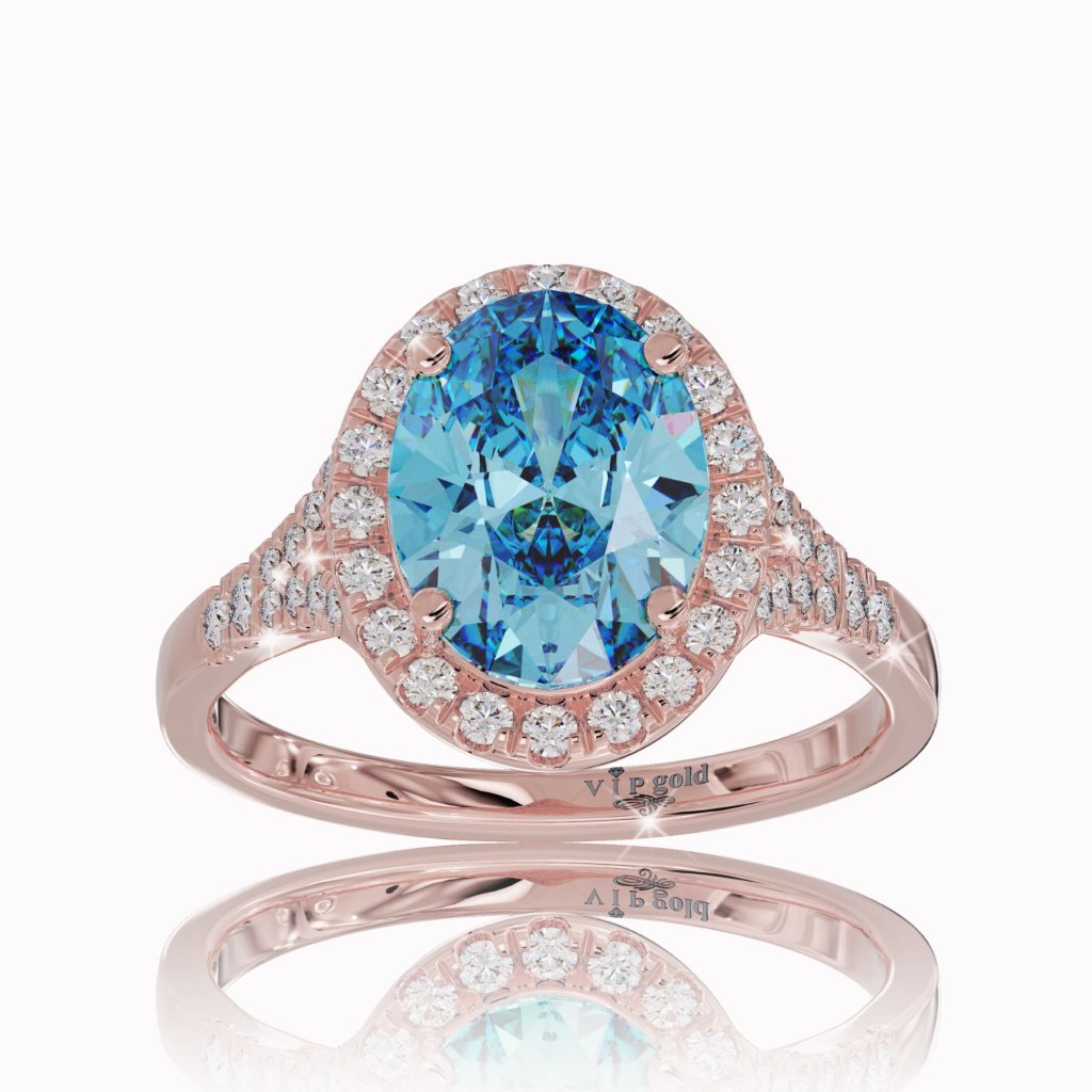 Luxusný prsteň s briliantmi a modrým topásom v červenom zlate 14K
