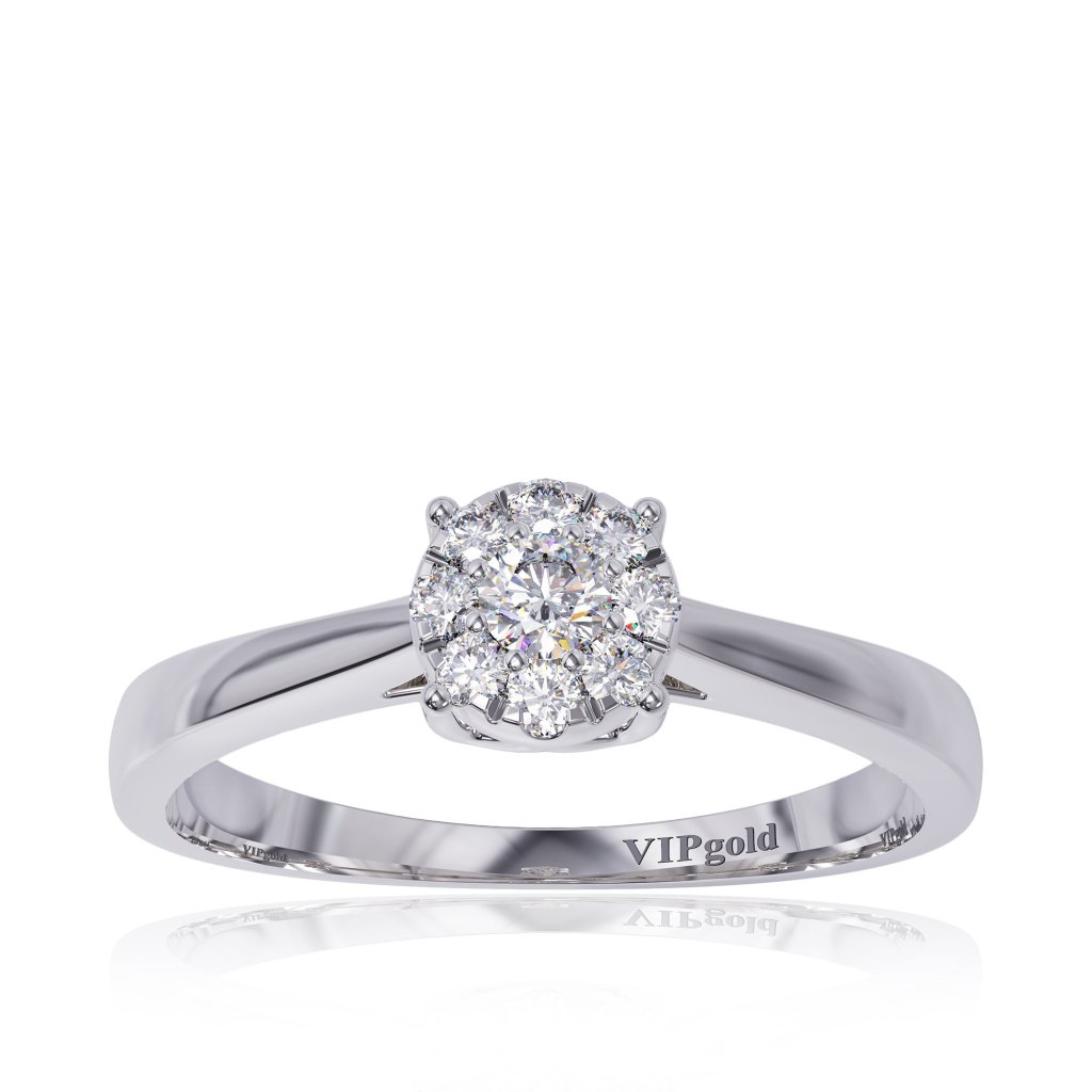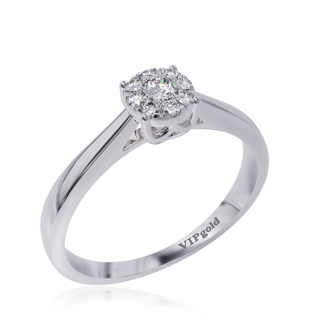 Žiarivý briliantový prsteň z bieleho 14karatového zlata môže byť súčasťou tejto dôležitej chvíle. Prsteň je zdobený jemnou korunou skladajúcej sa z viacerých briliantov, ktoré spolu tvoria 0,10ct. Čistota týchto briliantov je SI a farba H.