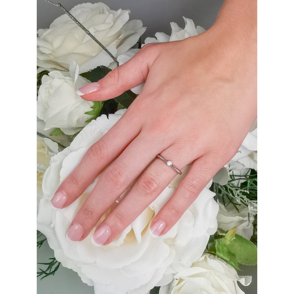 Zásnubný prsteň z bieleho 14karátového zlata v sebe ukrýva nádherne sa ligotavý diamant v briliantovom výbruse, ktorý je výborným spoločníkom každej ženy. Parametre tohto briliantu sú vynikajúce - čistota SI, farebnosť H (vzácne biela) a hmotnosť 0,08ct.