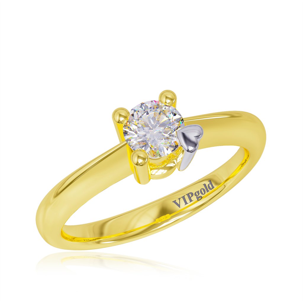 Briliant vo veľkosti 0,18 ct je osadený do 4 krapní, z ktorej jedna je vymodelovaná do milého srdiečka z bieleho zlata.