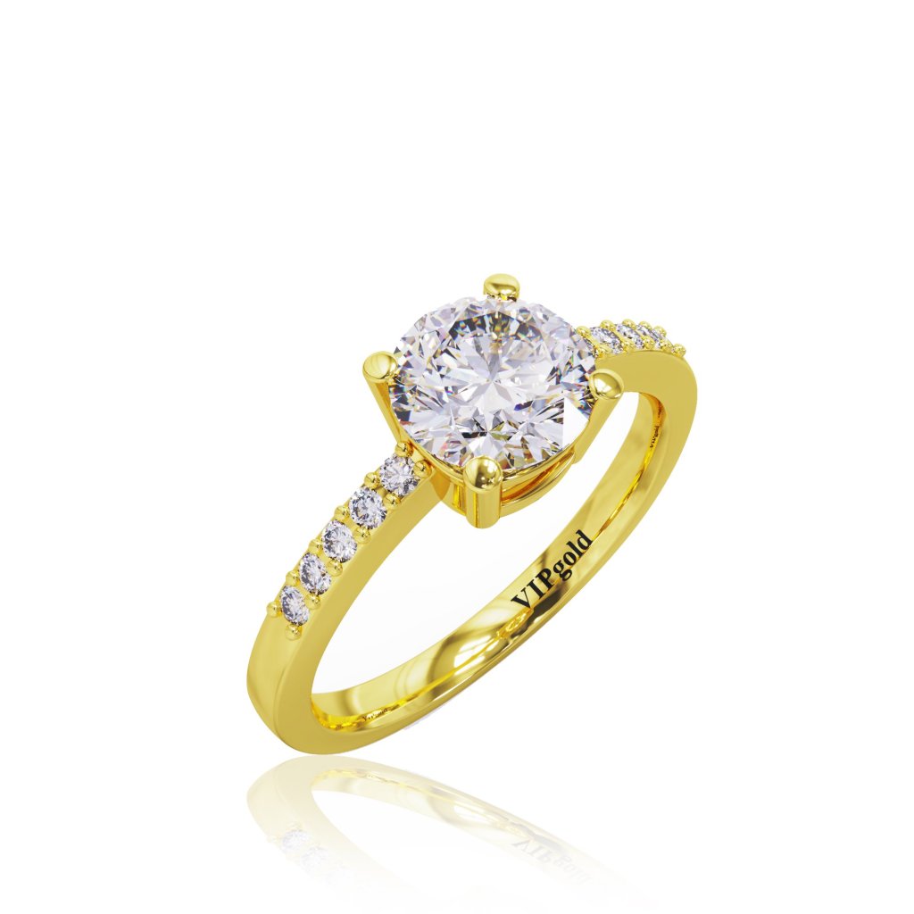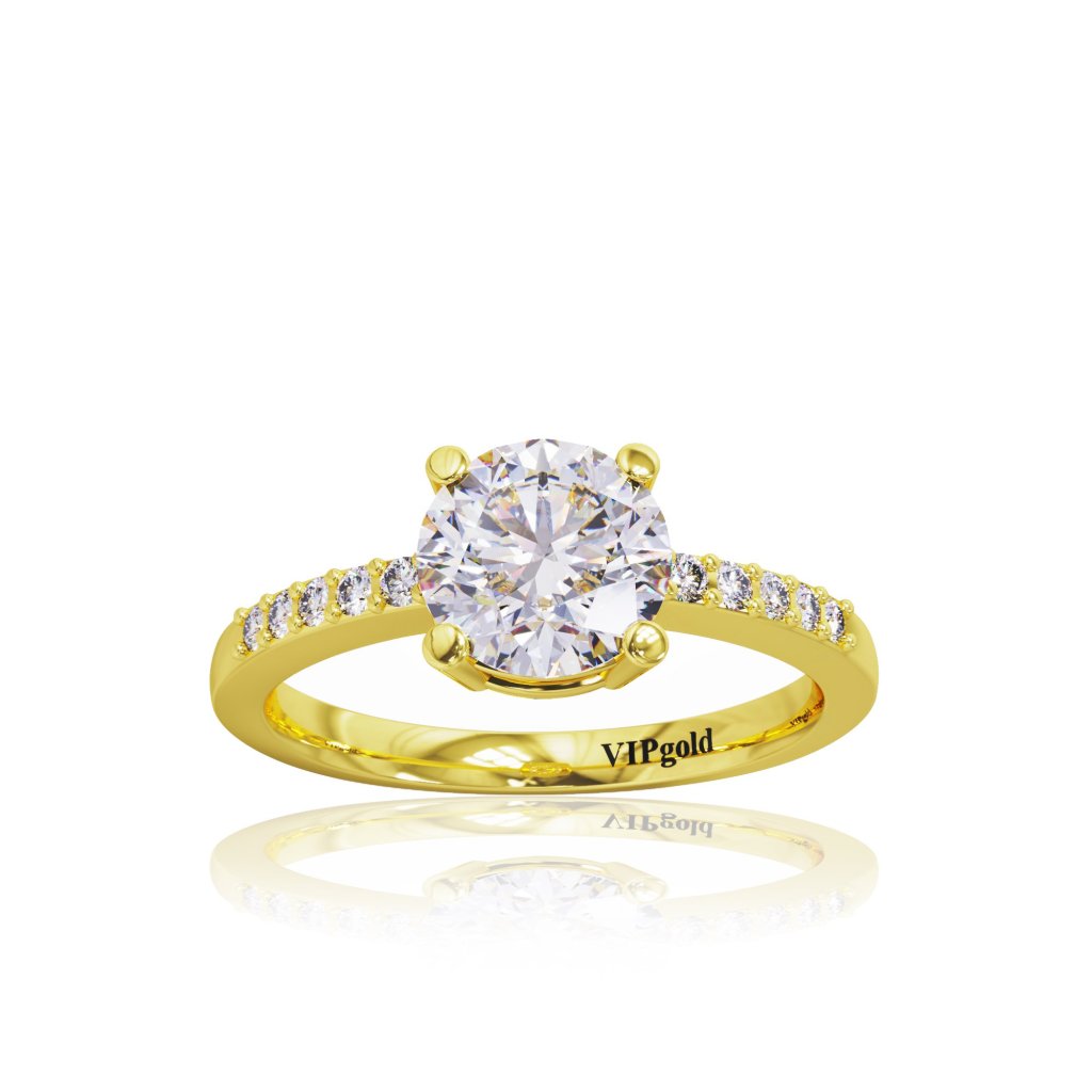 Prsteň je vyhotovený zo žltého 14 karátového zlata, v ktorom jasne žiaria Swarovski zirkóny.