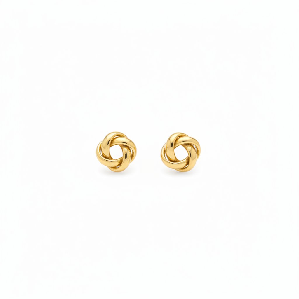 Dámske náušnice v tvare uzlíkov zo 14 karátového žltého zlata.